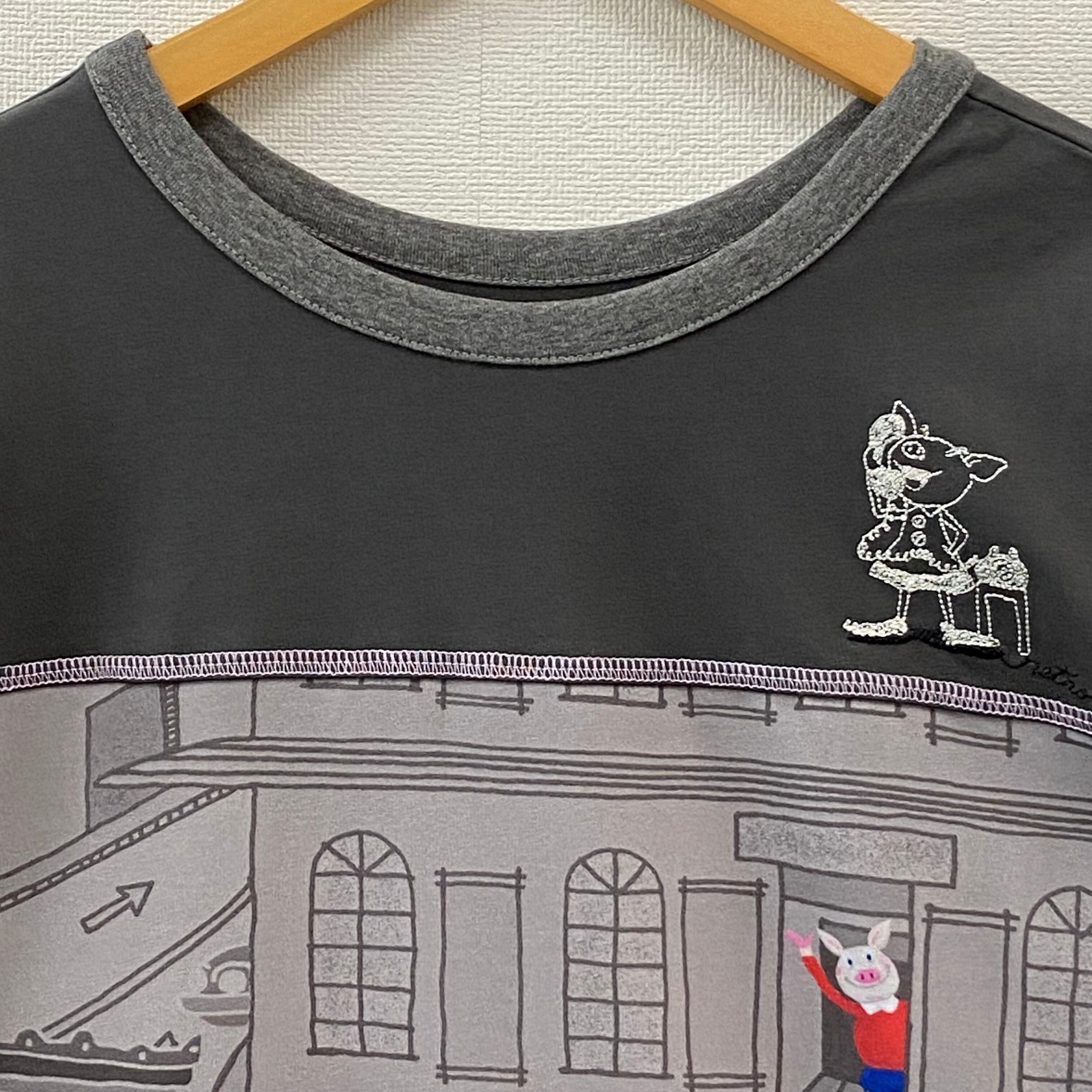前後ともヨーク切り替えでヨーク部分にミシン刺繍が施されています