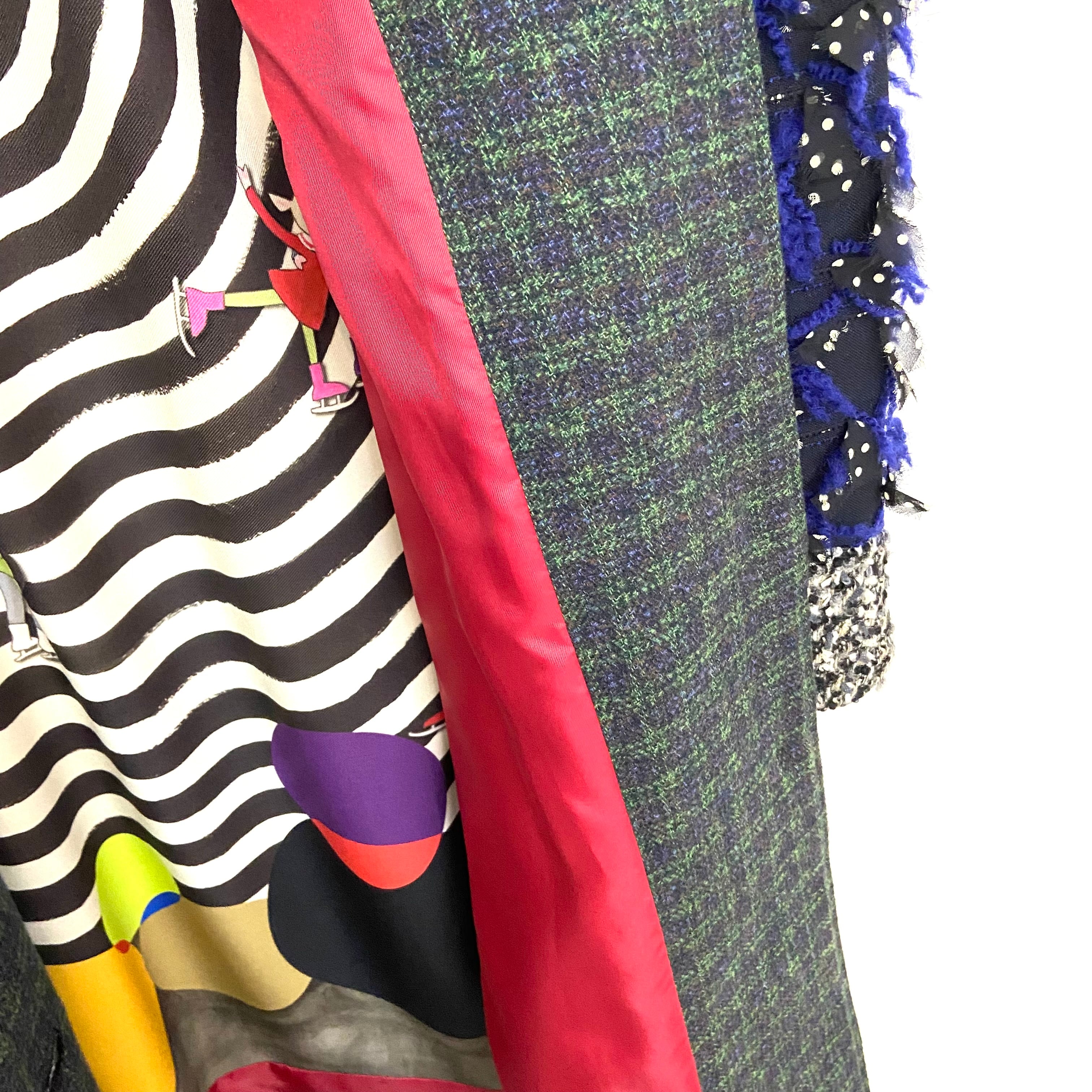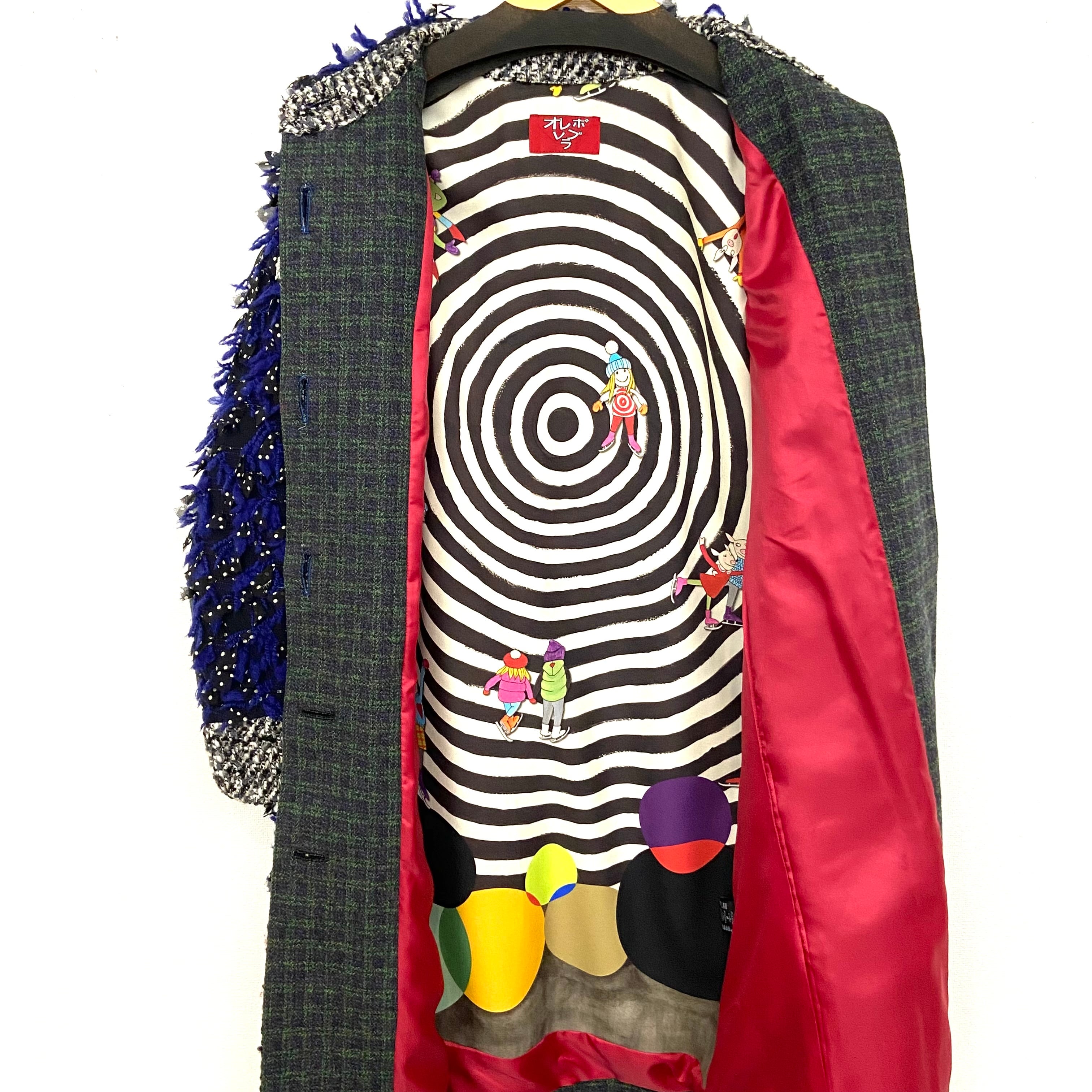 襟下の前立てにアップリケ刺繍が施され くるみボタンやビーズ刺繍 ブレード使いなど豪華なモチーフが印象的なコートです