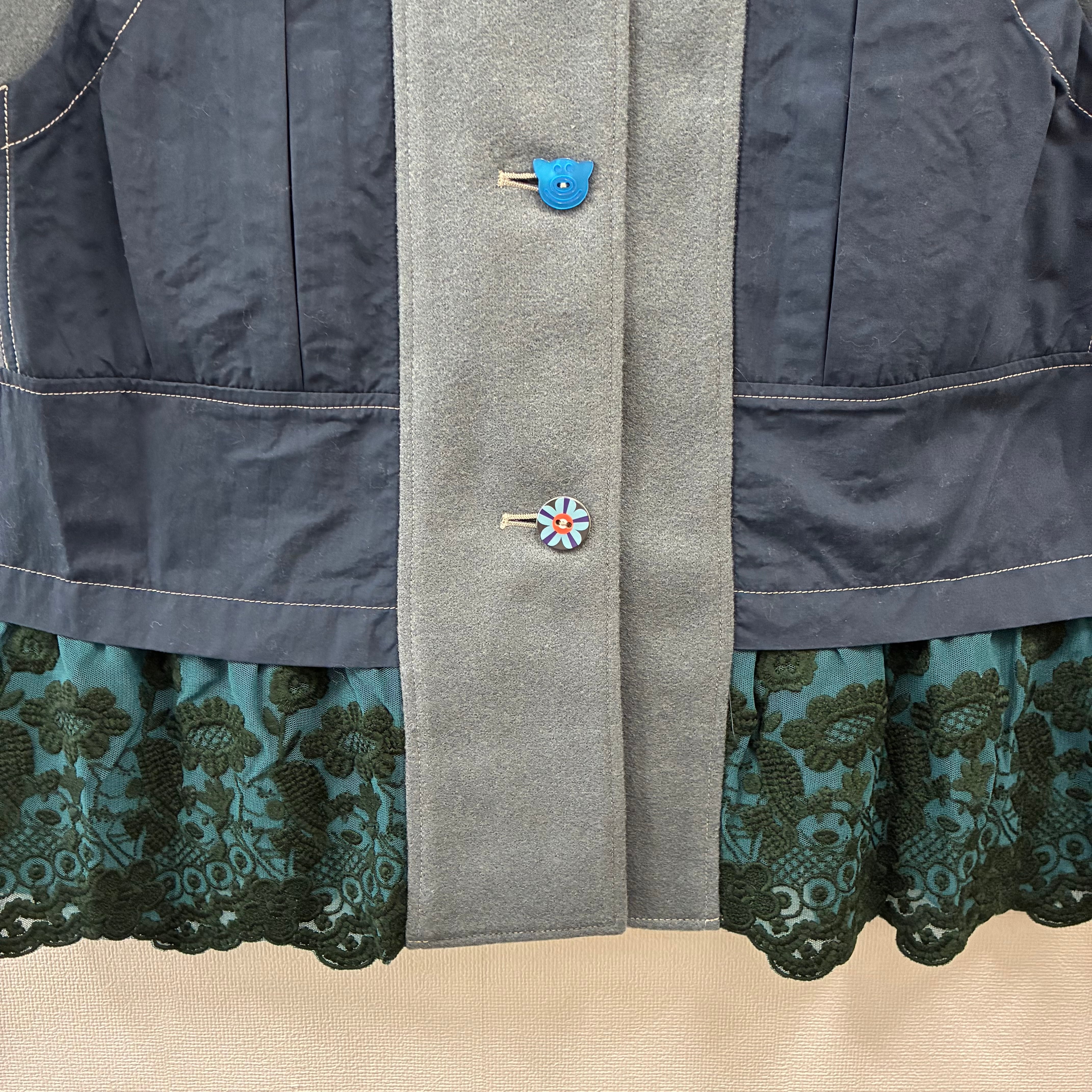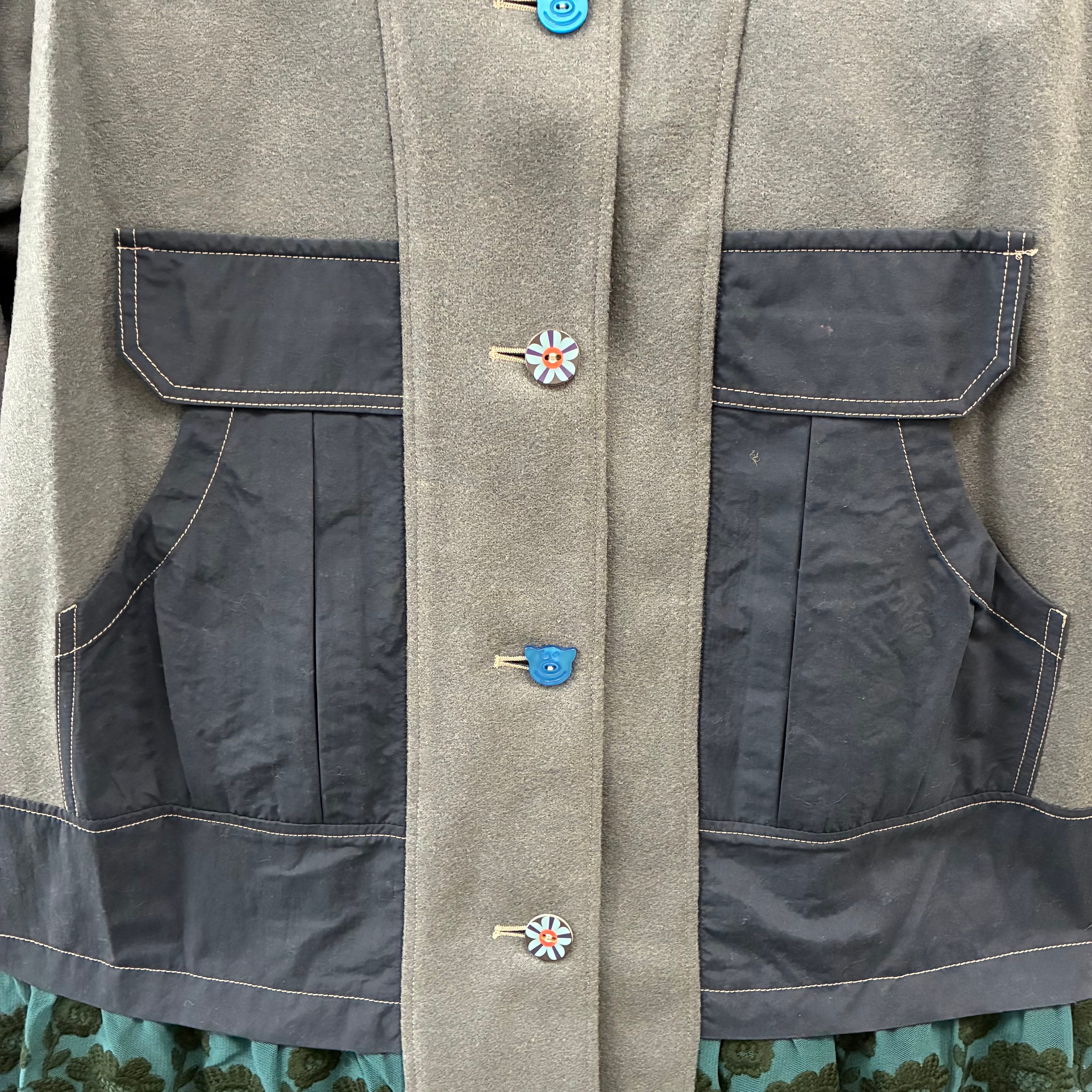 ノーカラーでボタン開閉 ボタンはブタちゃん型 花プリント等5個