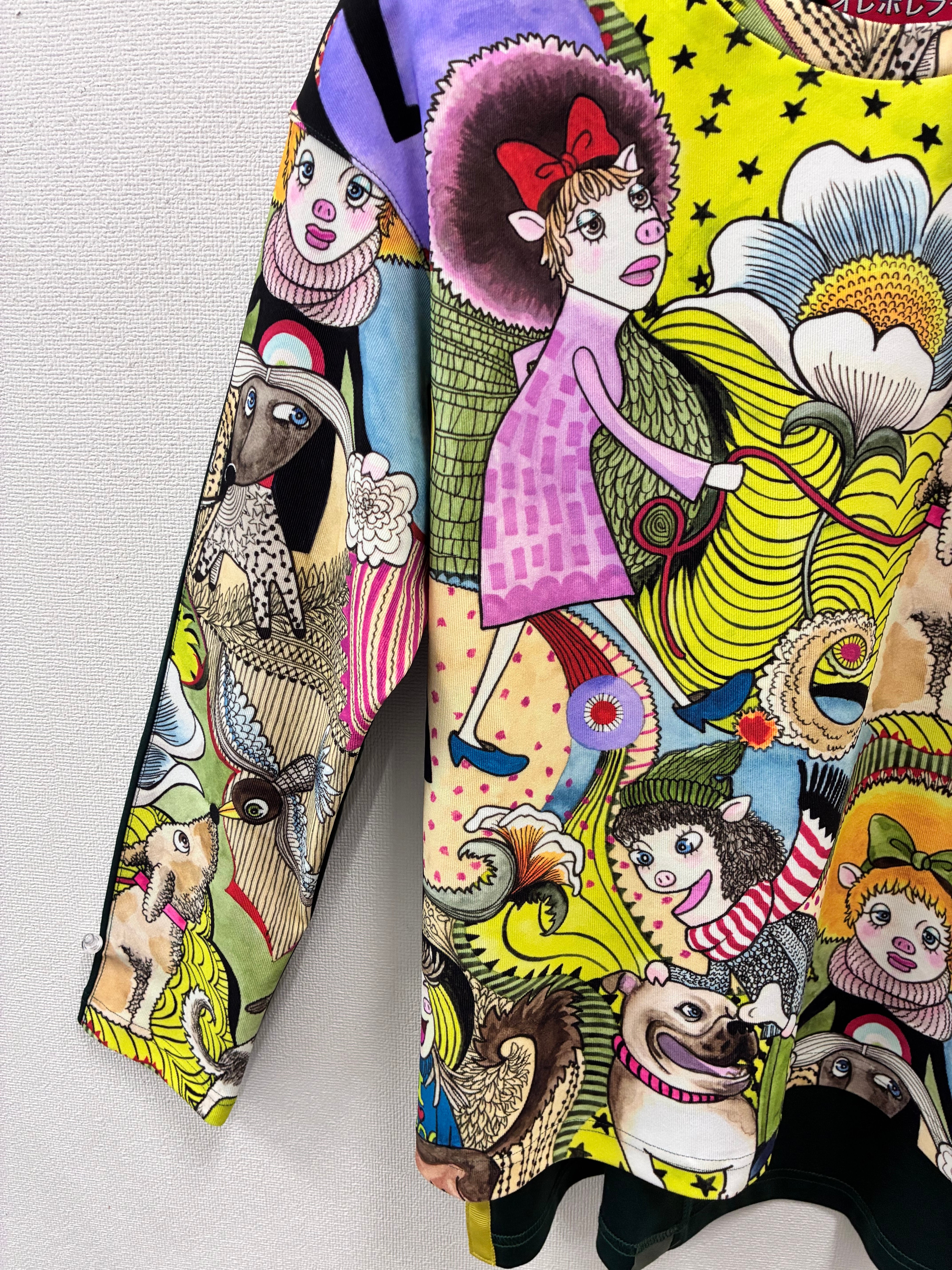 素材はプリント生地がポリエステル90% ポリウレタン10% カットソー