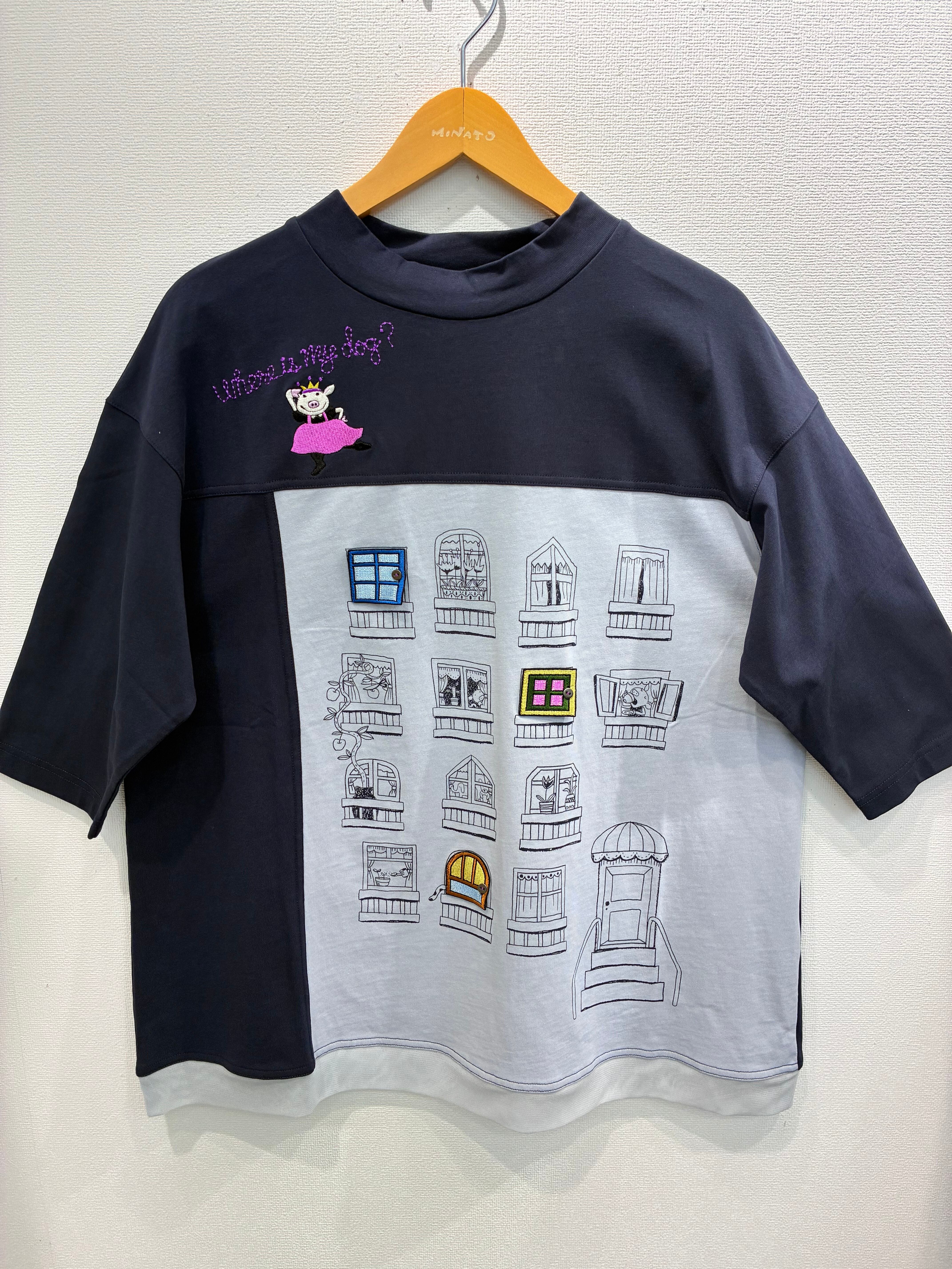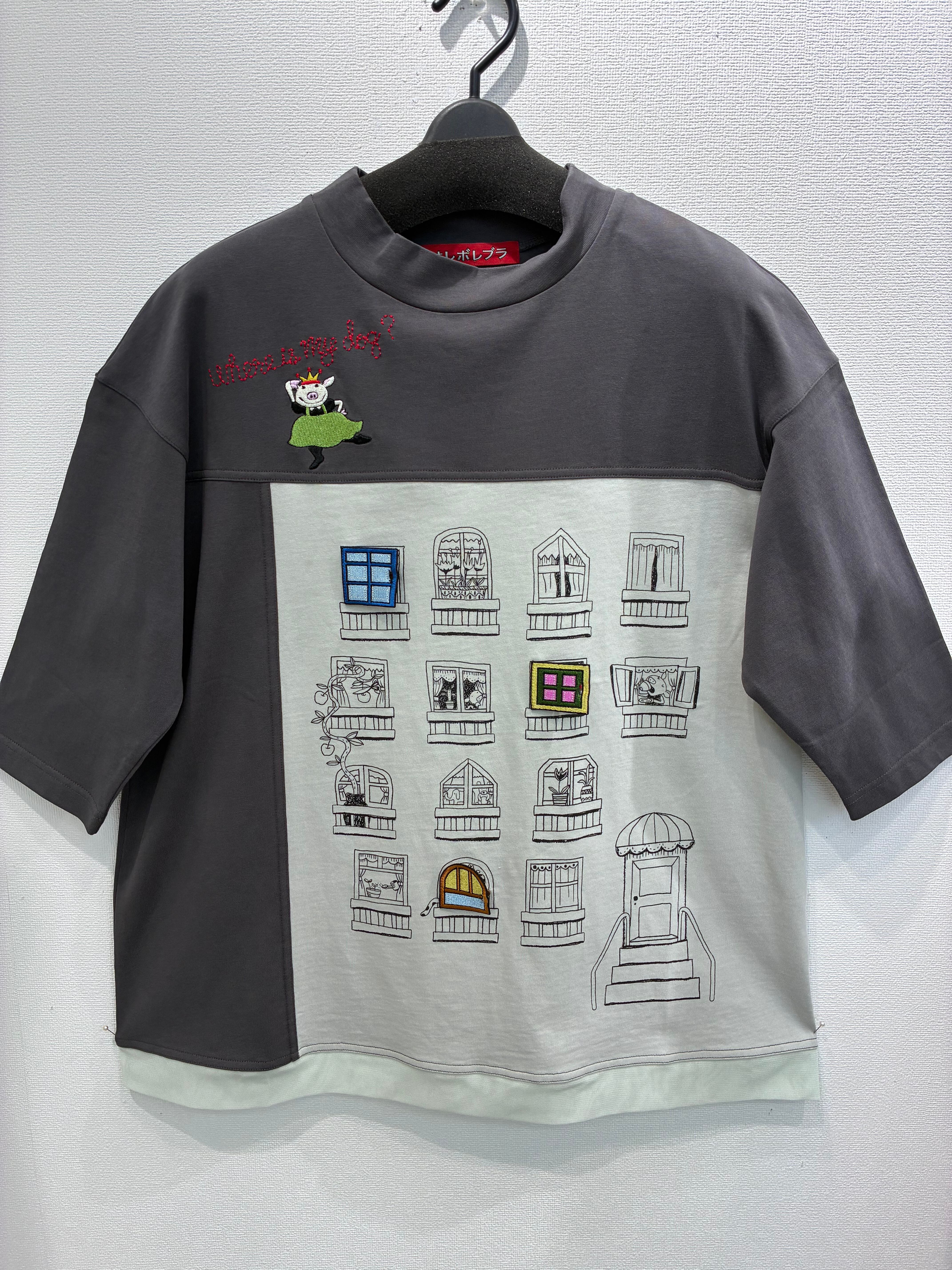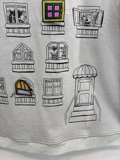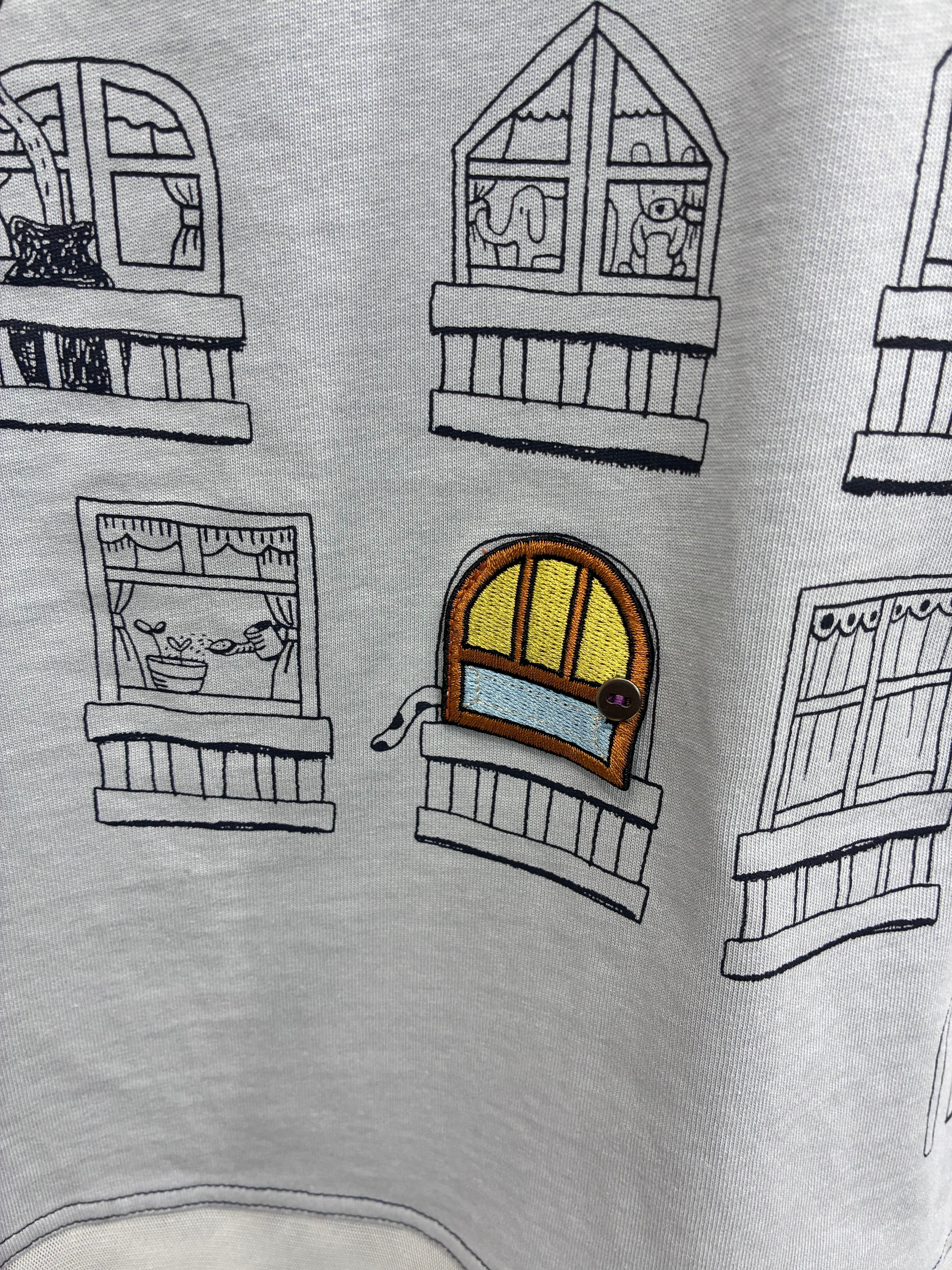 プリントの窓3箇所にワッペンによるドアがついている 面白い仕掛けのデザインです