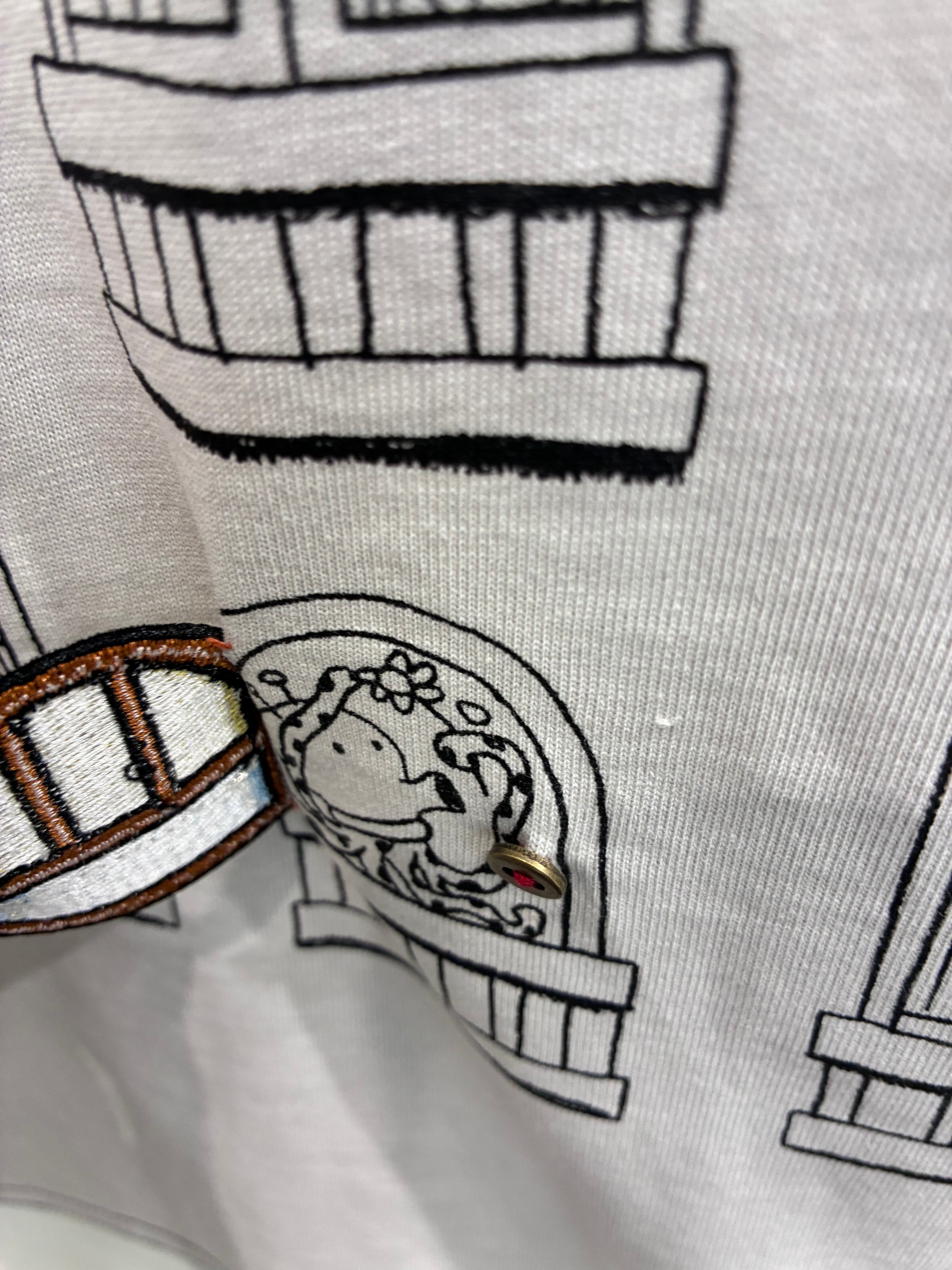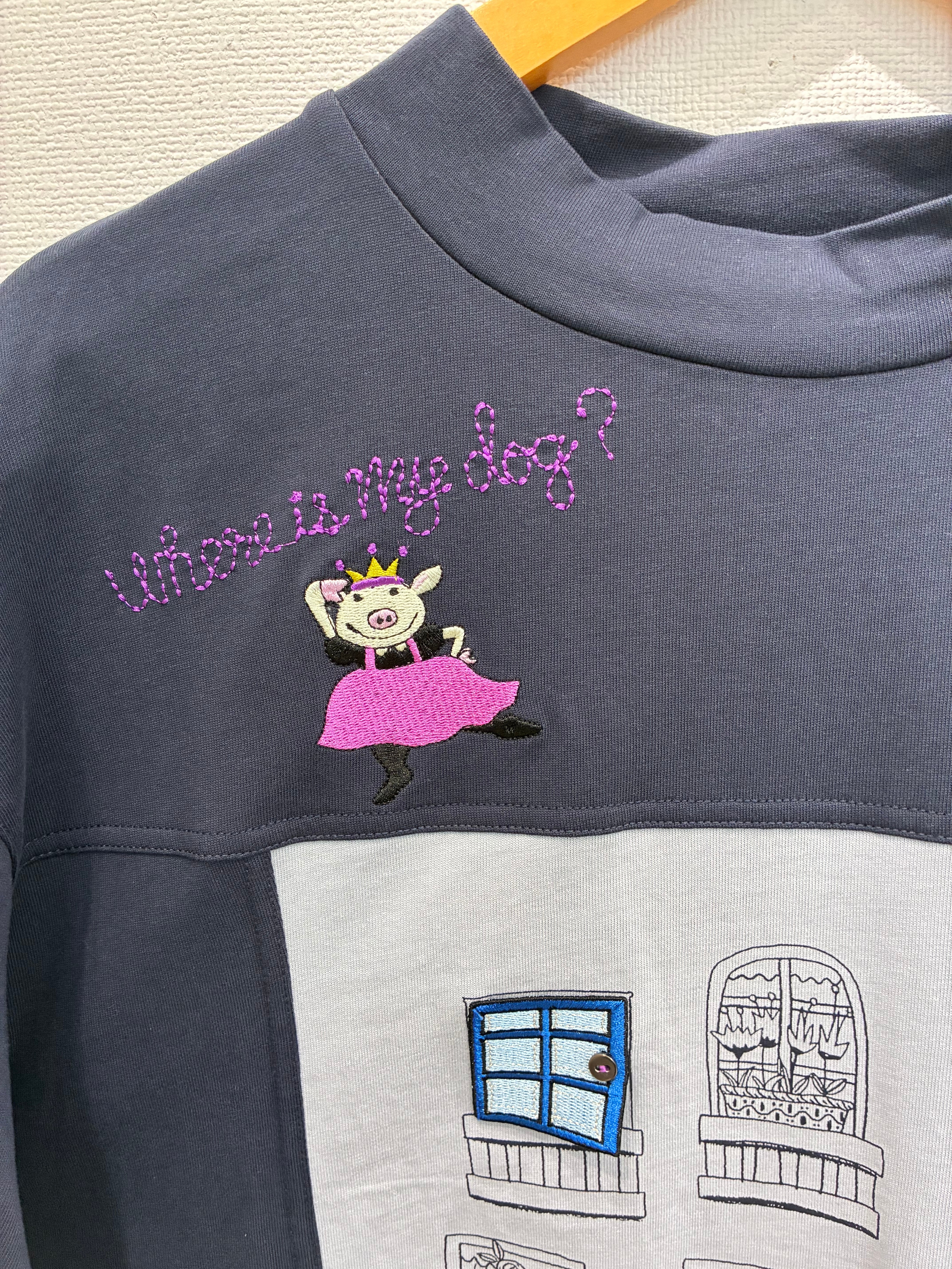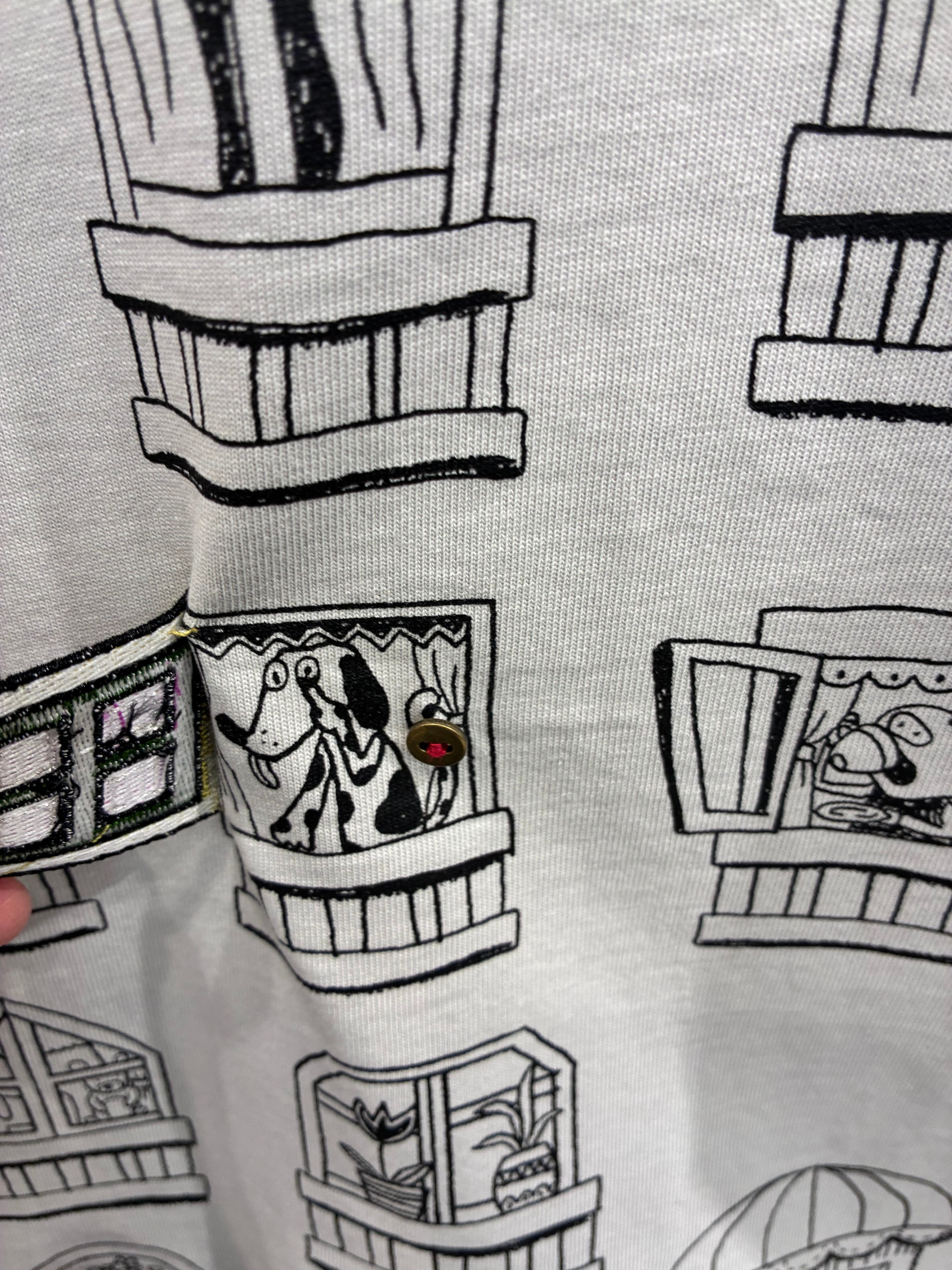 プリントの窓3箇所にワッペンによるドアがついている 面白い仕掛けのデザインです