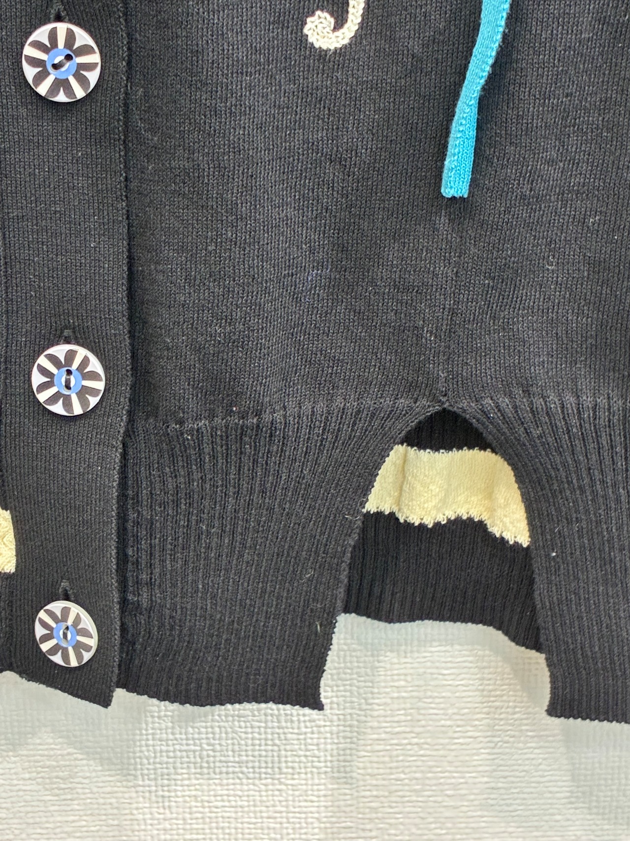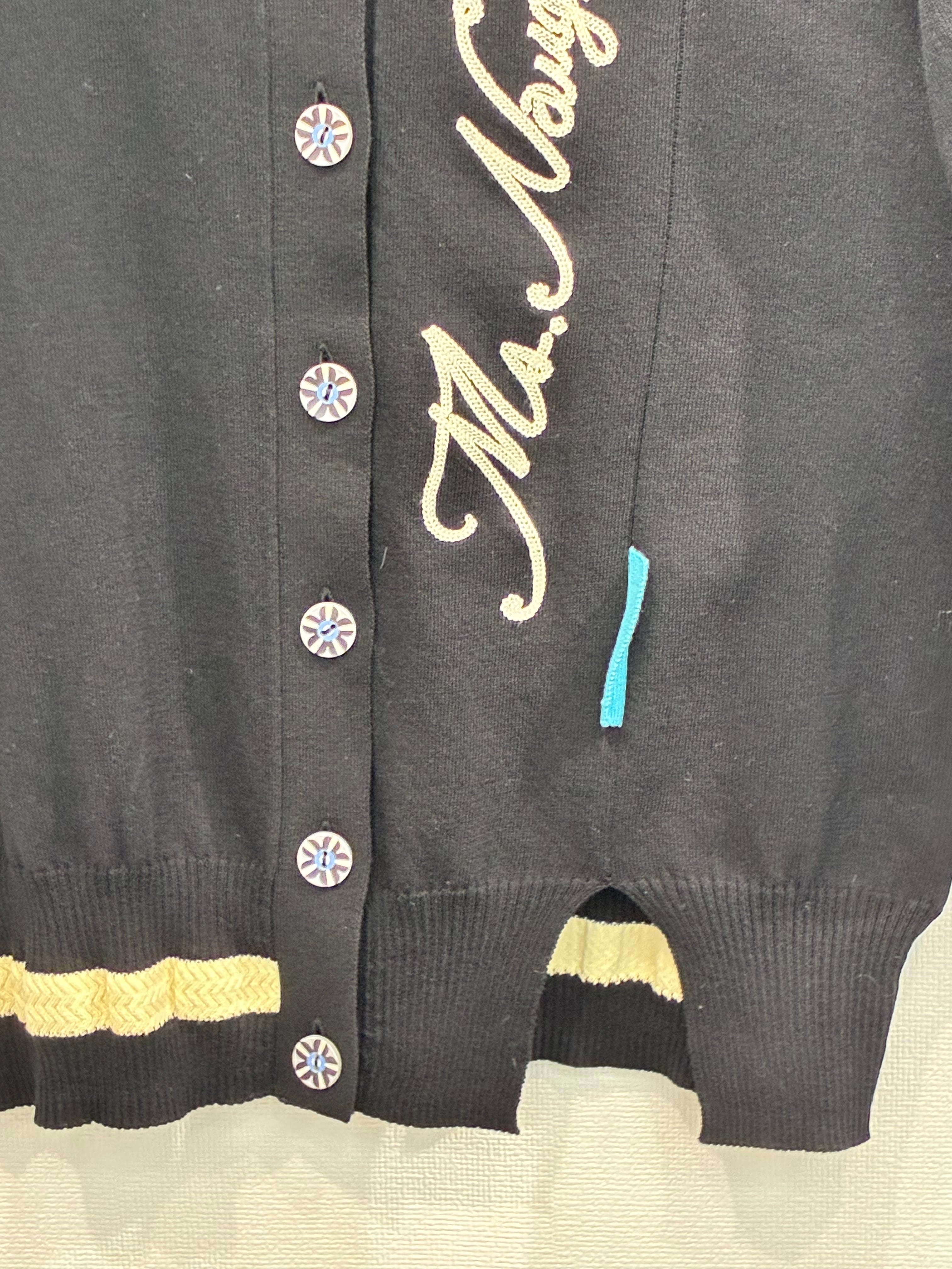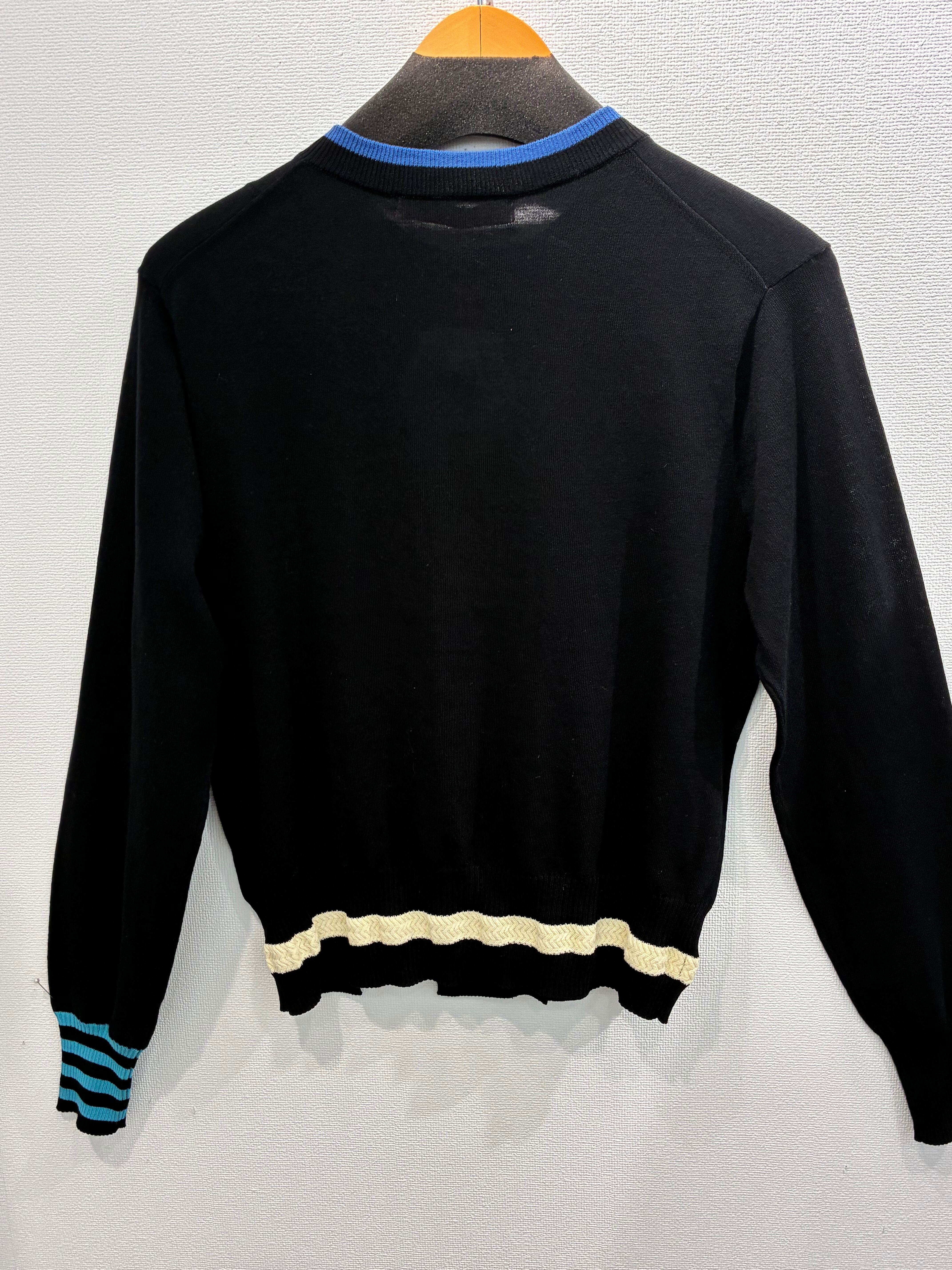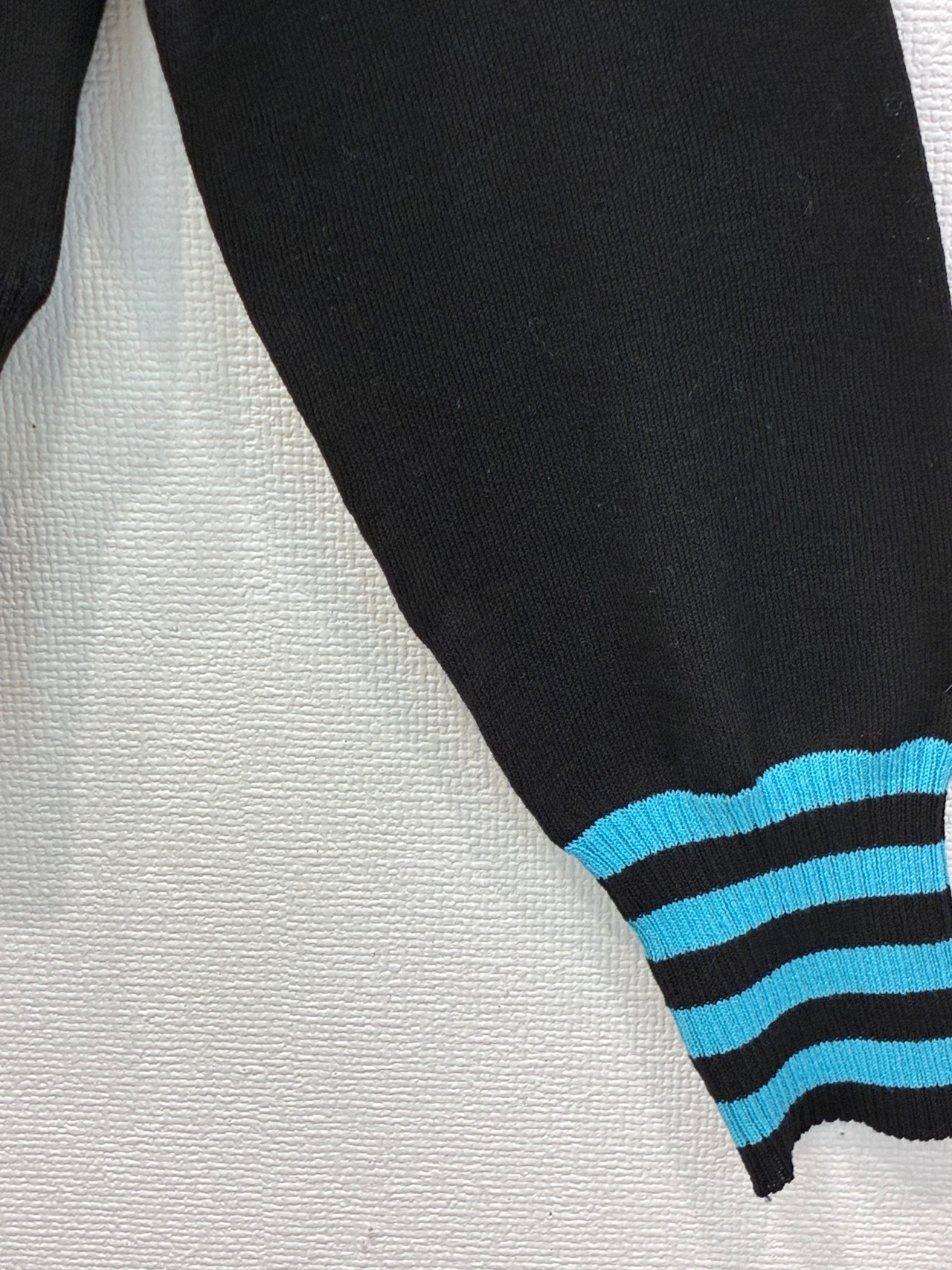 左袖口は配色ボーダーリブ