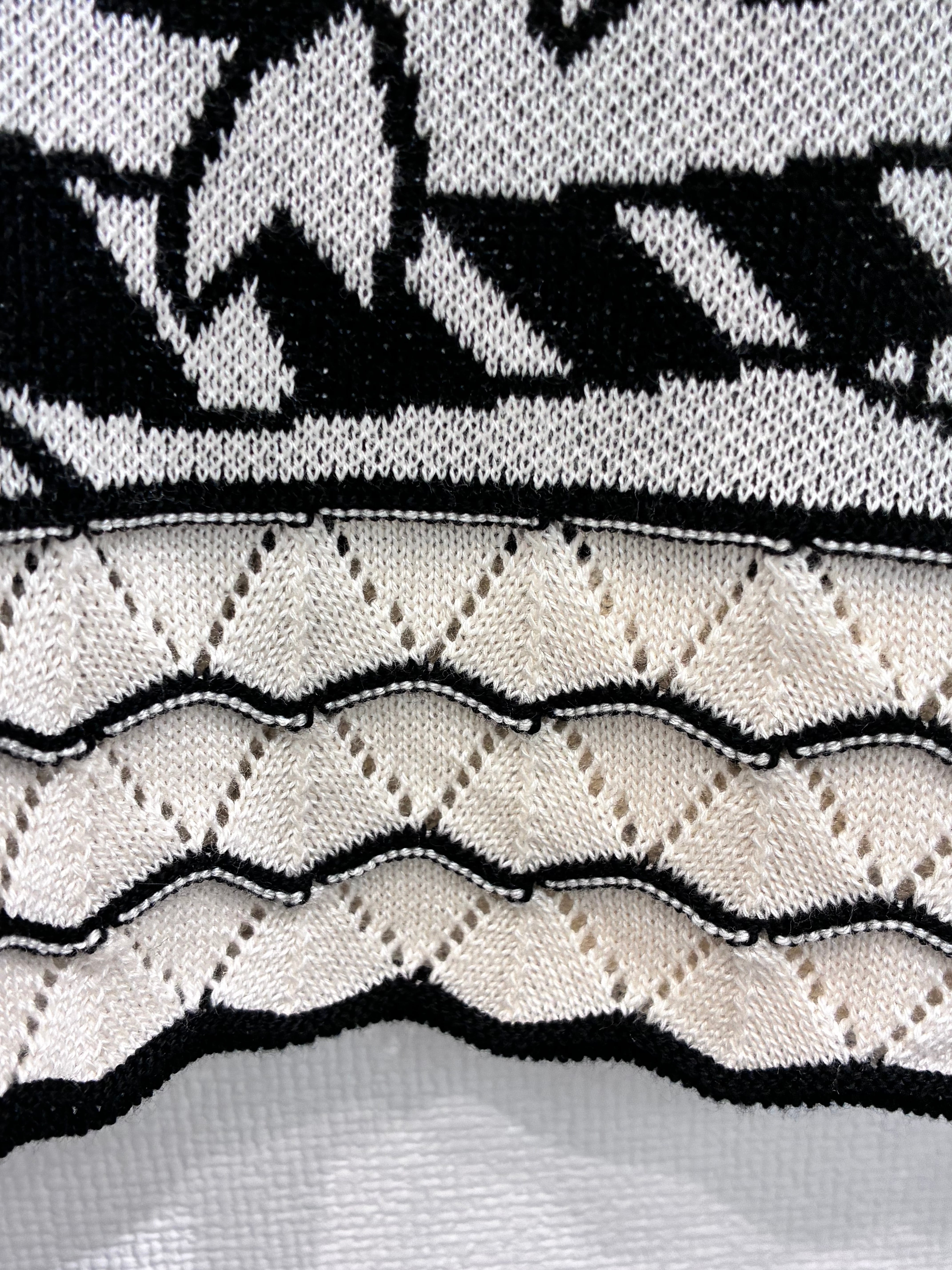 袖はメッシュ編みと天竺編みのボーダー