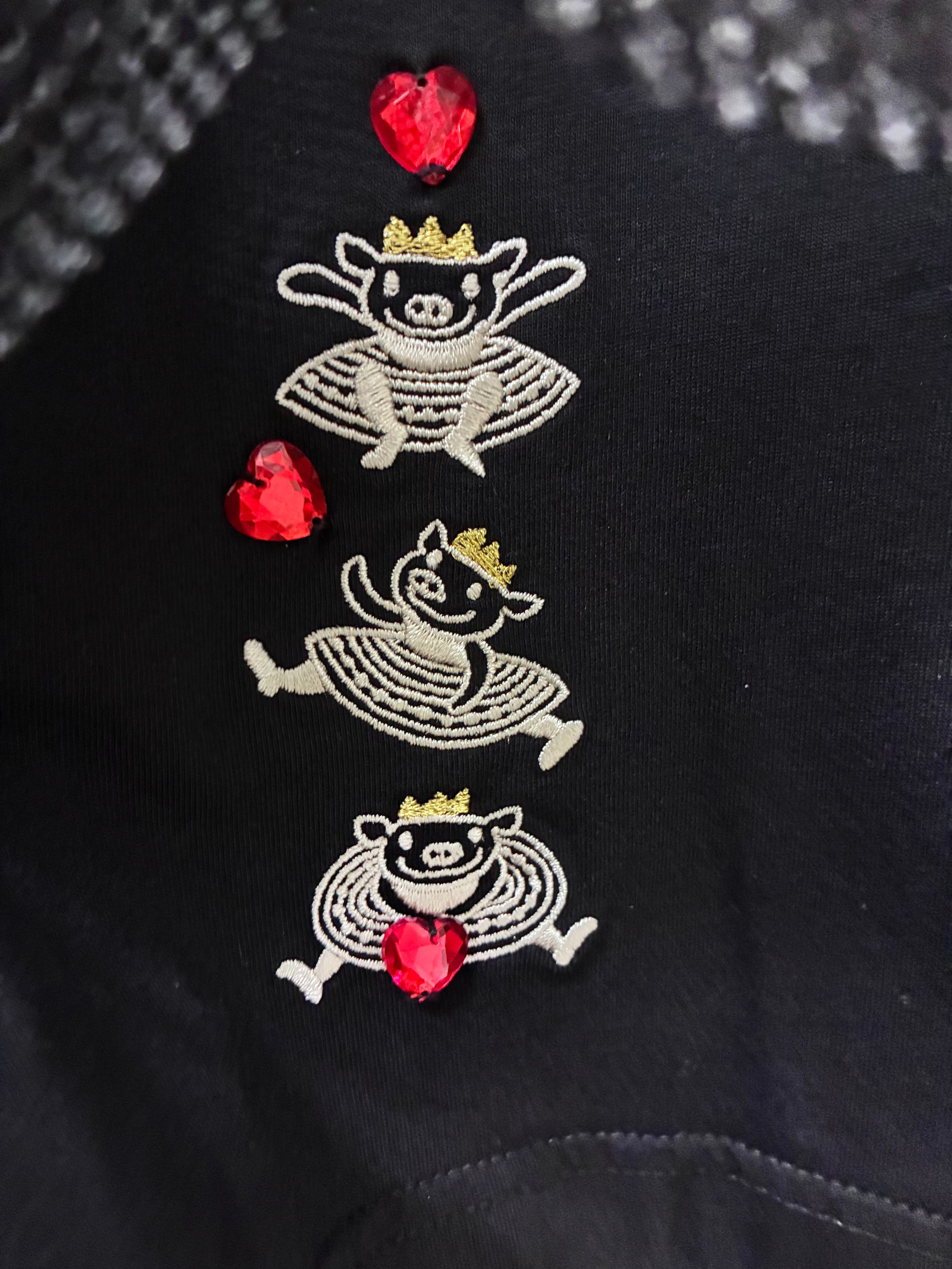 内側のカットソー 右裾にミシン刺繍とパーツ