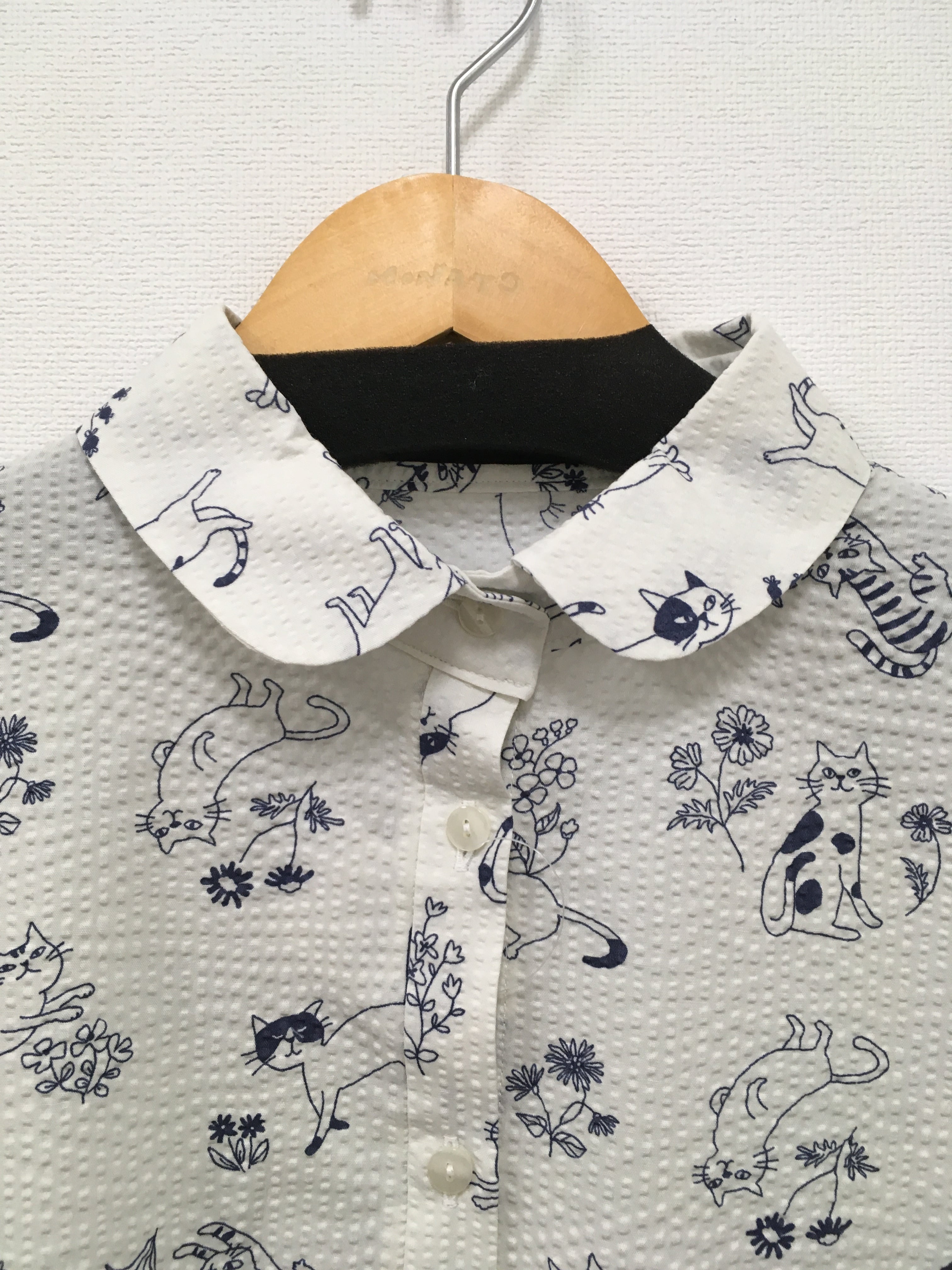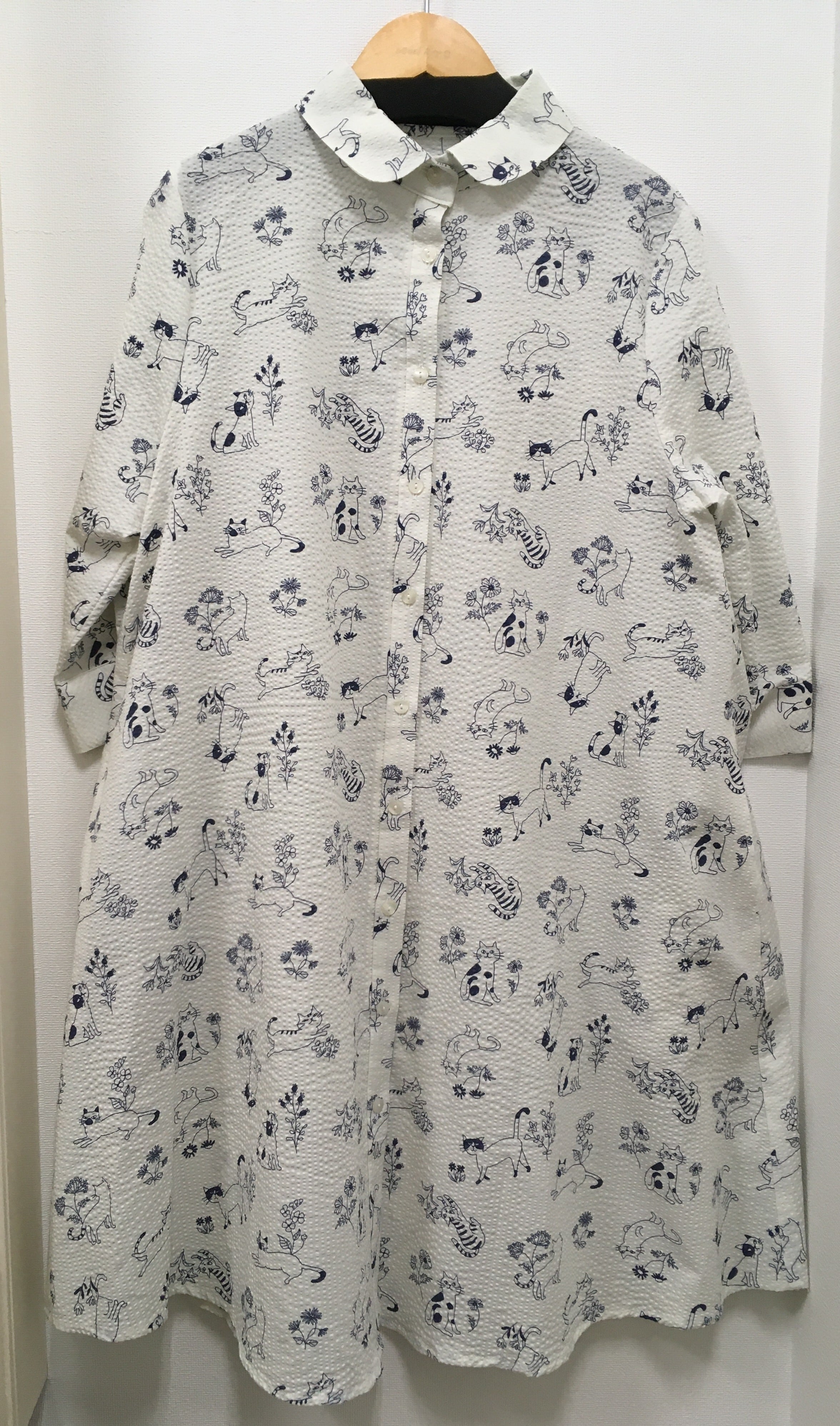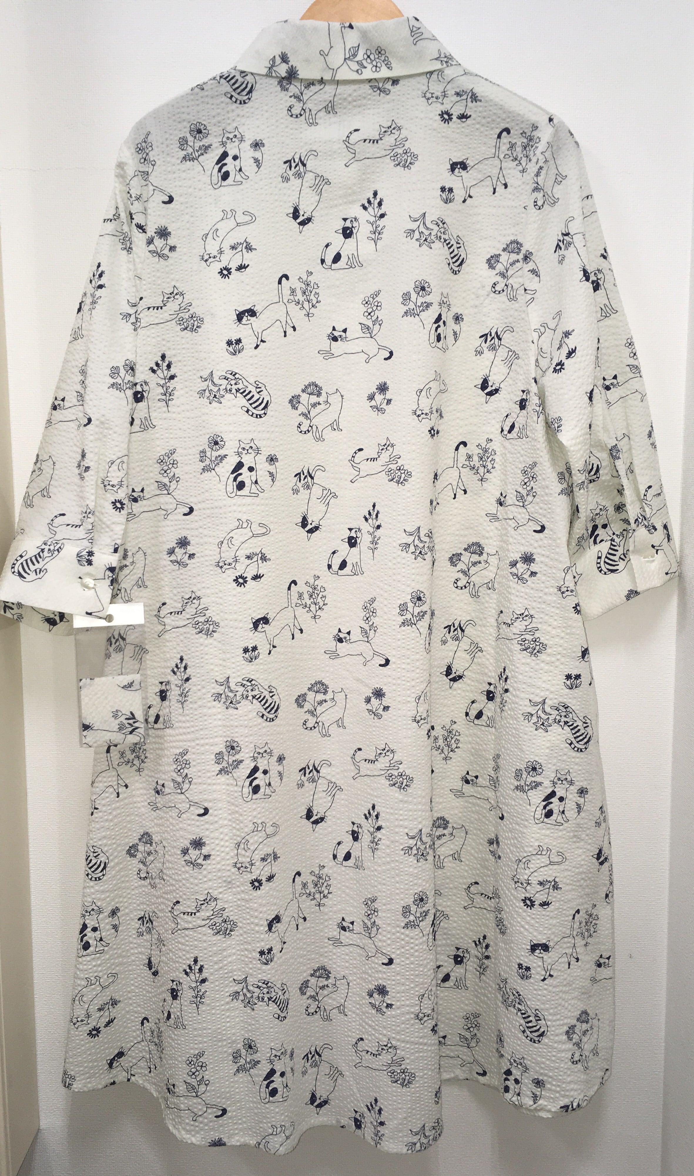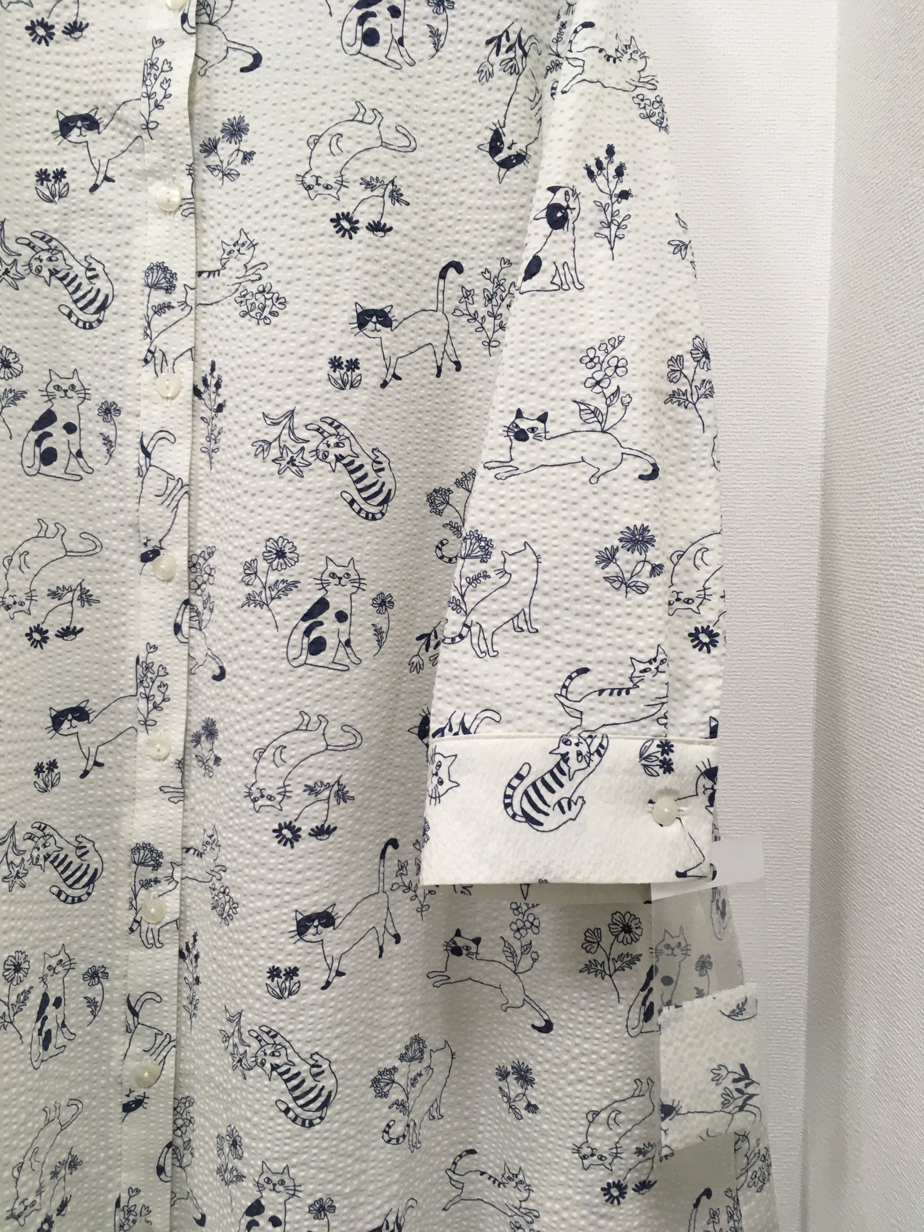 ブティックミナトオリジナル、ネコ柄のシャツワンピースです。