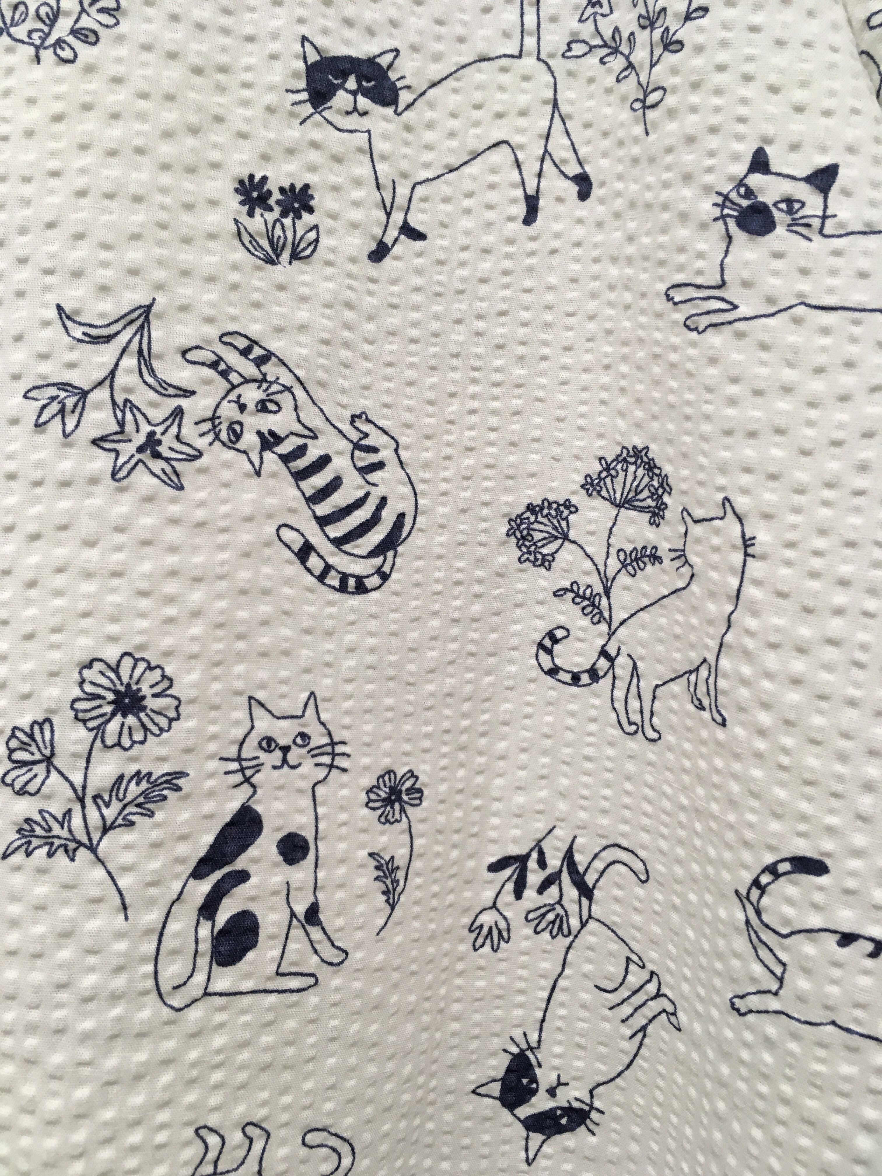 ネイビーのネコ柄とサッカー地が涼し気な印象を与えてくれます。