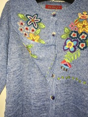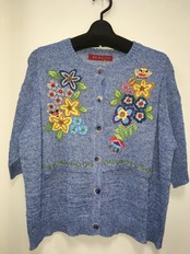 刺繍部分は二重のデザインになっていますが、それ以外は透け感があり涼し気なカーディガンです。