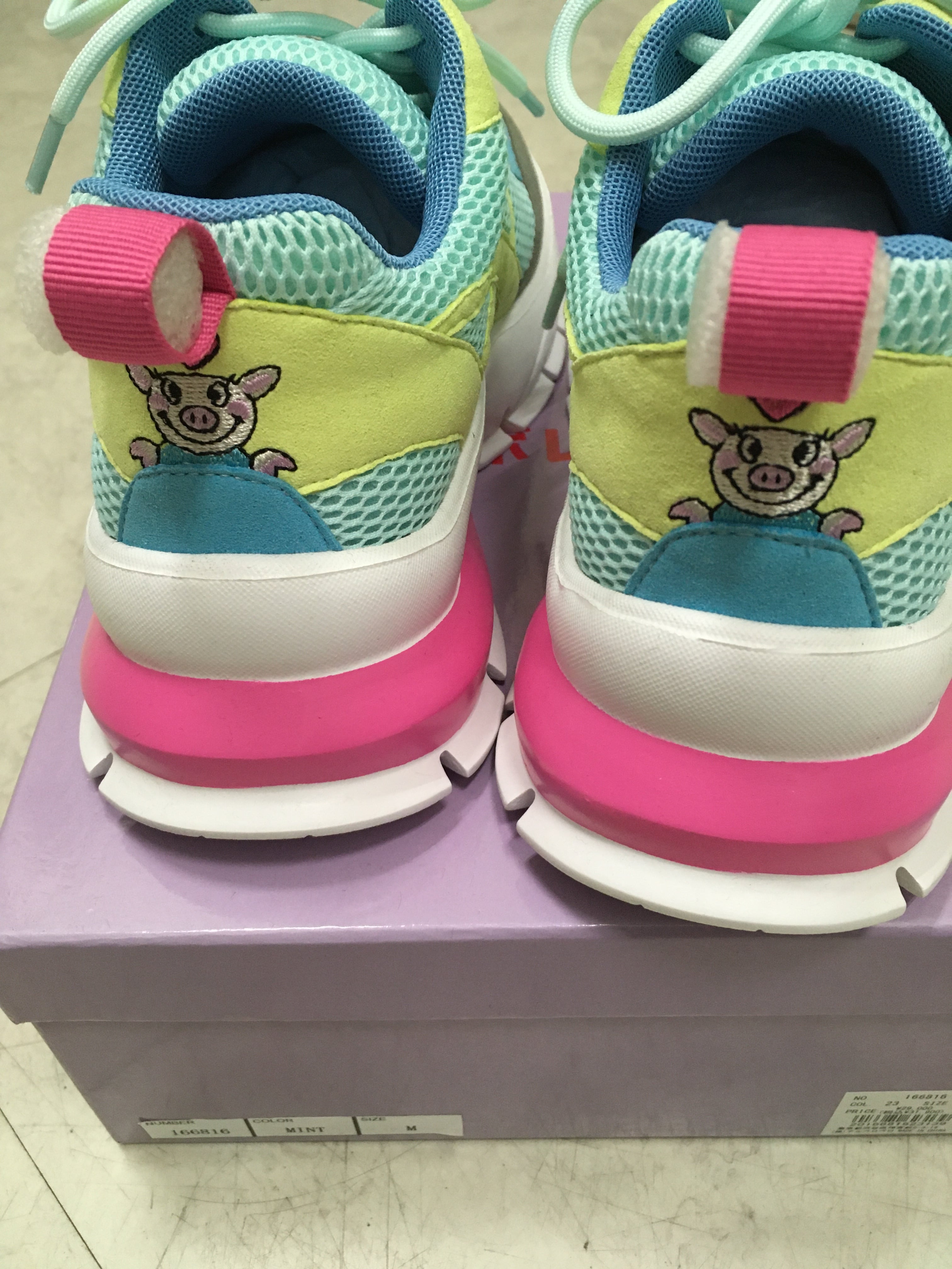 踵と外側にさりげなくブタさんがおり、ミントグリーンが春夏にぴったりのお色です。