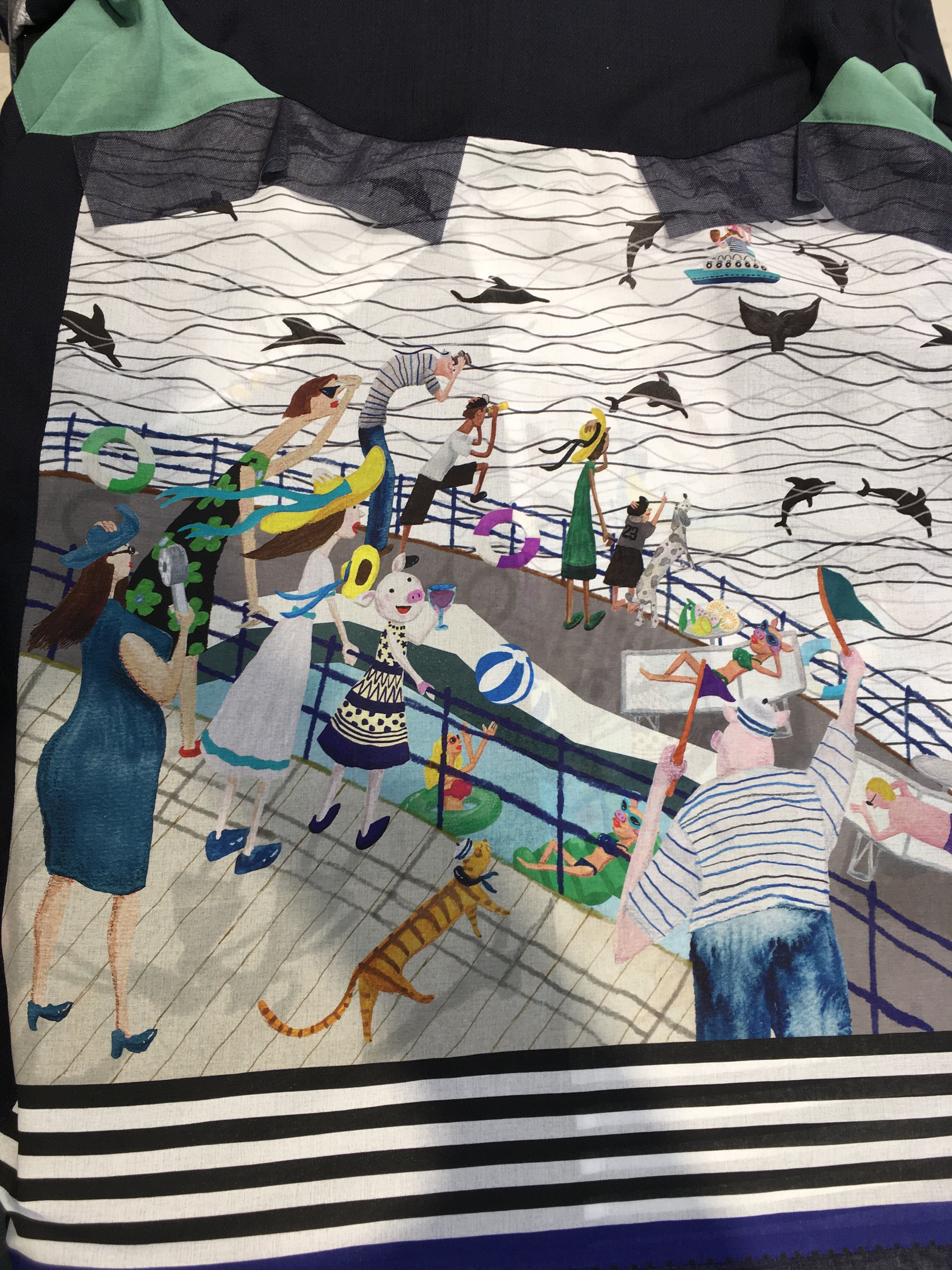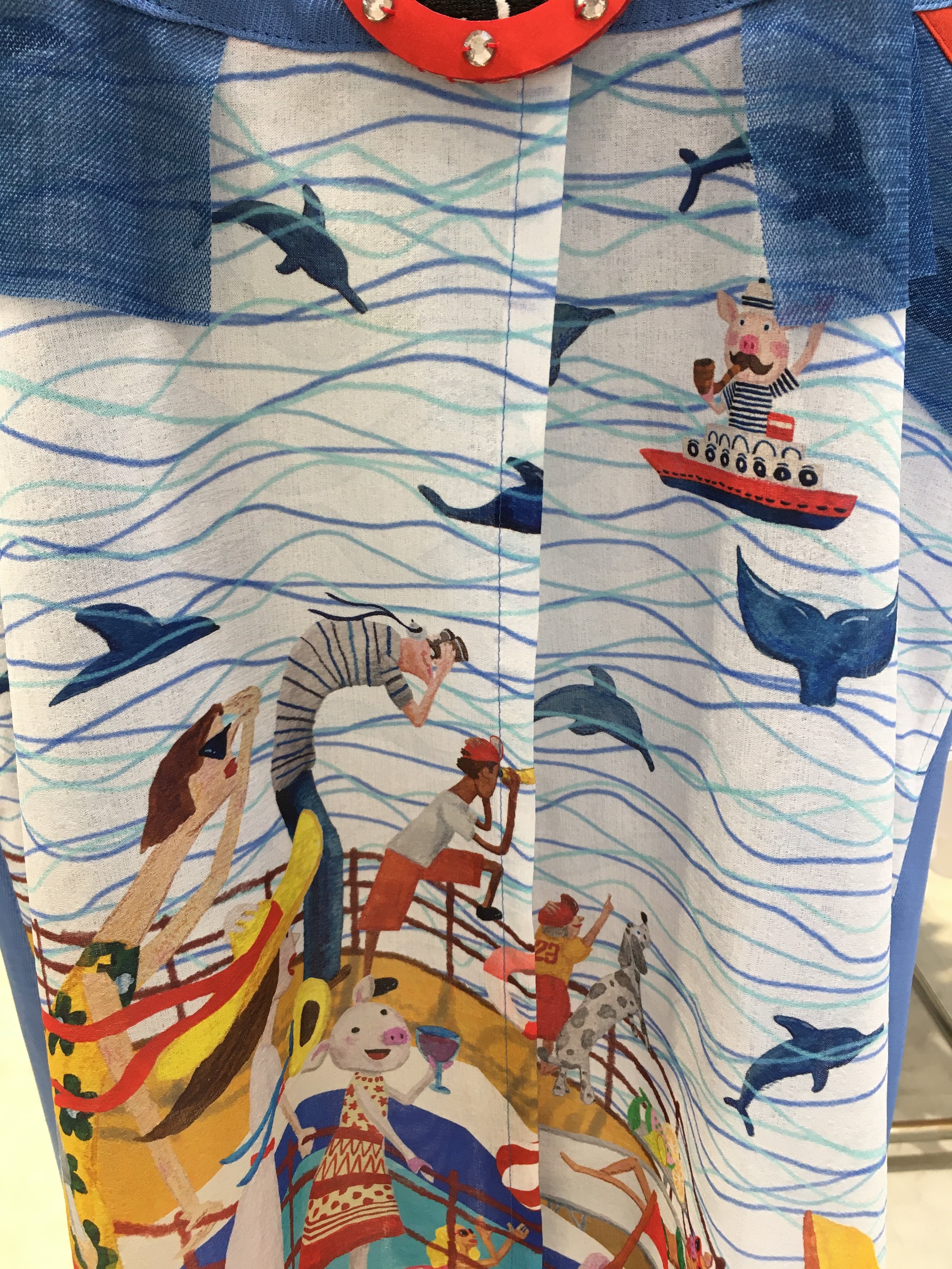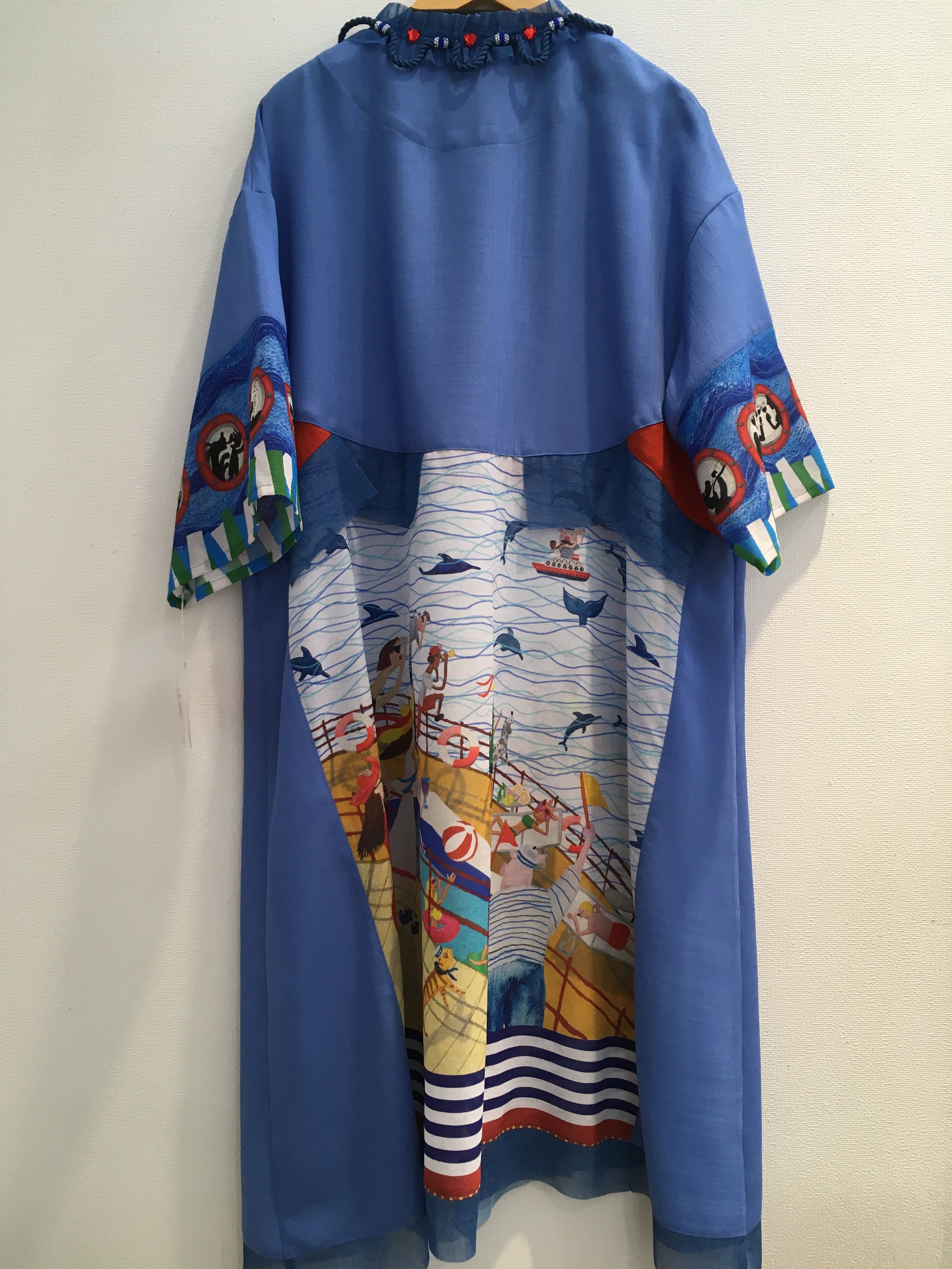 船旅のイラストで、船をイメージした首元のロープなど遊び心満載です。