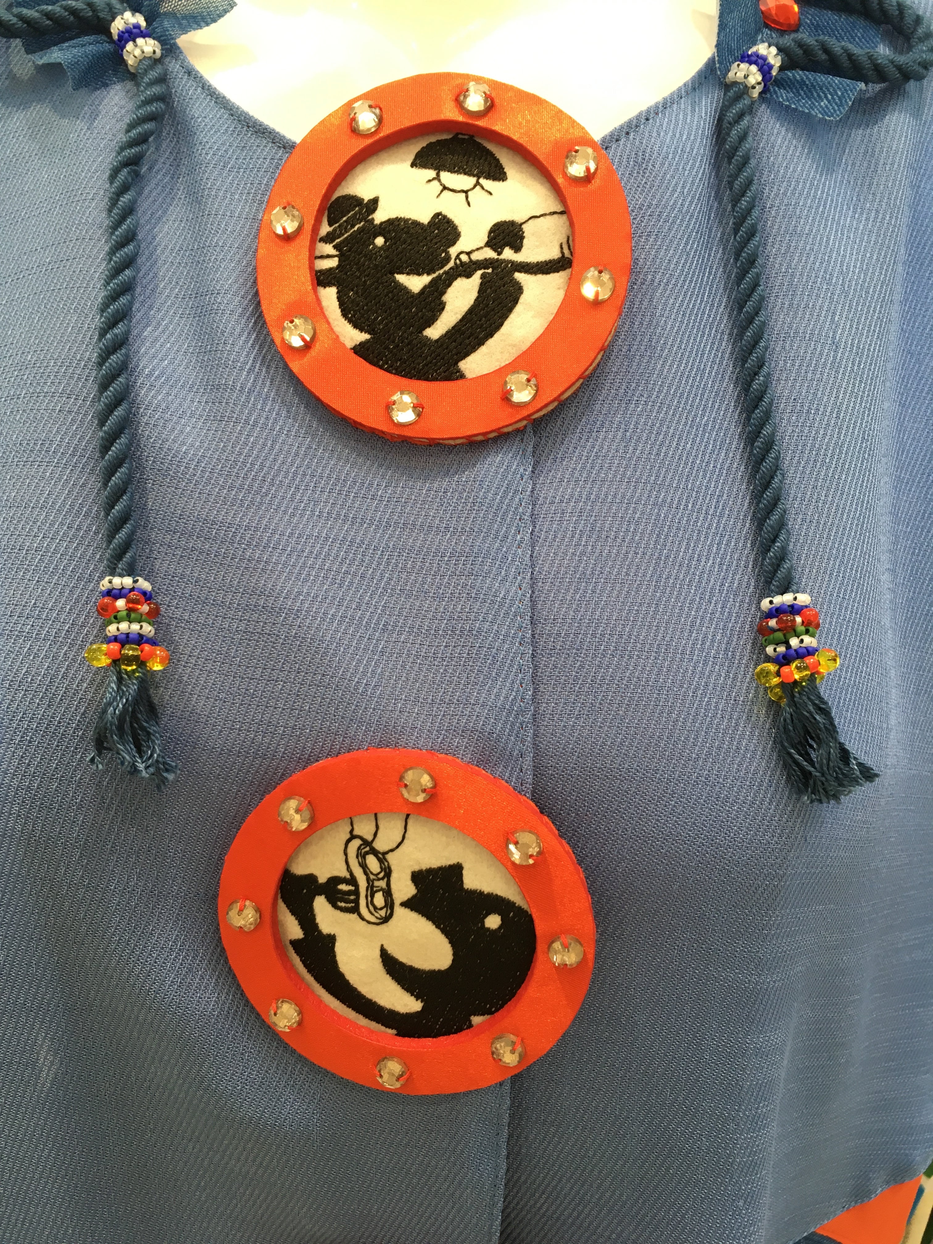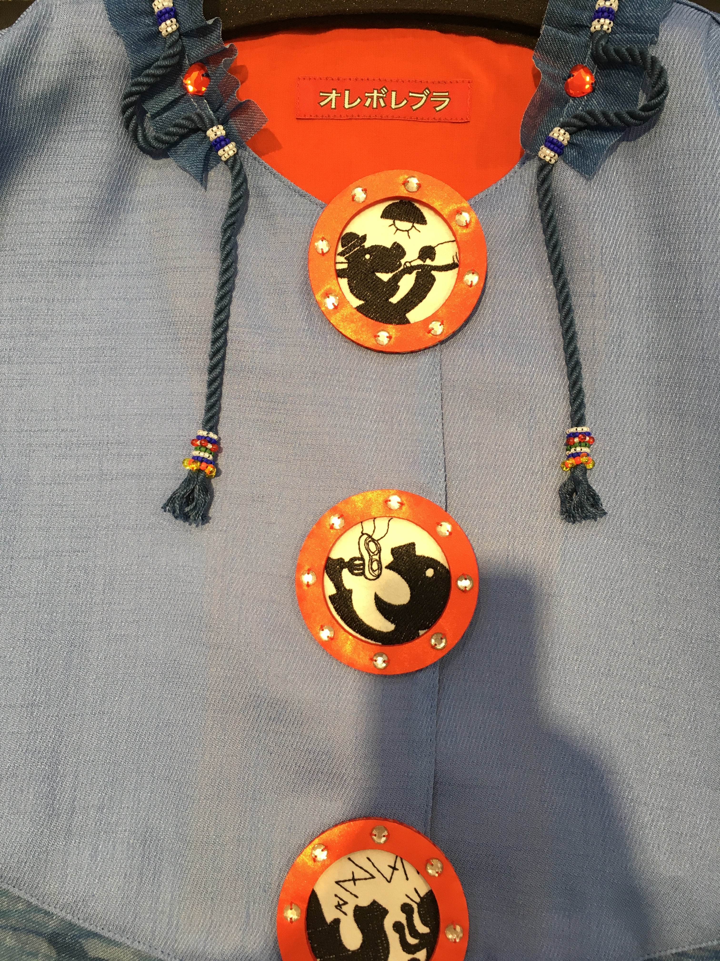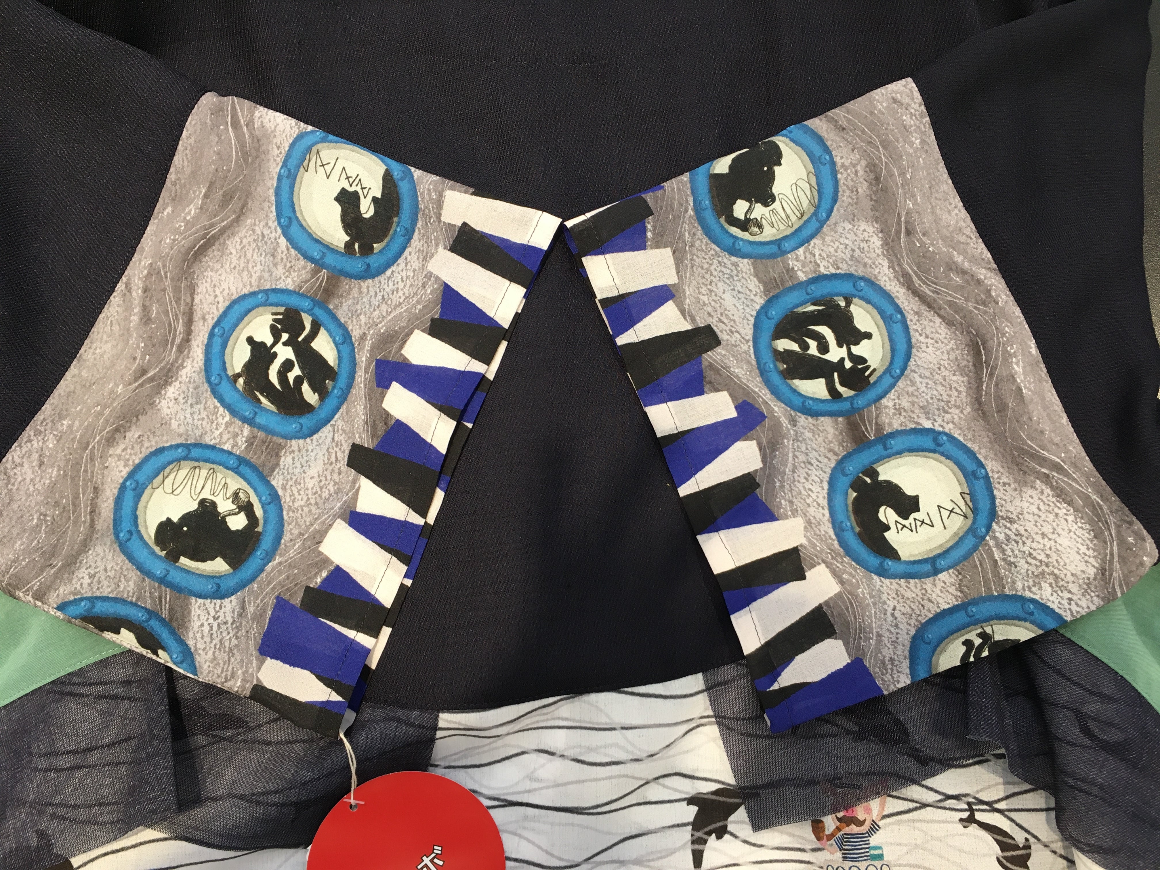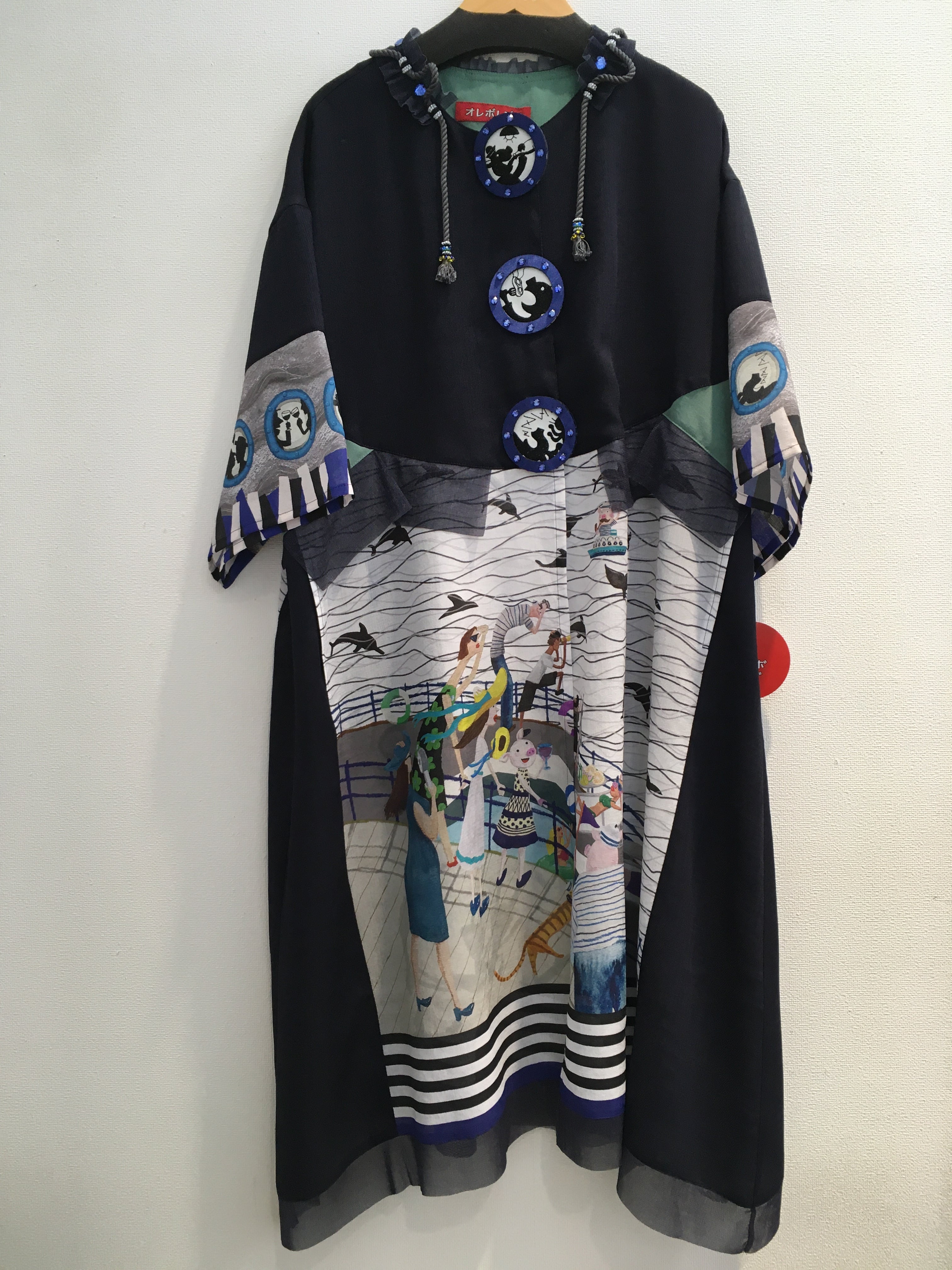 船室の窓がボタン部分と袖に描かれ、一つ一つ違った船内の様子が描かれています。