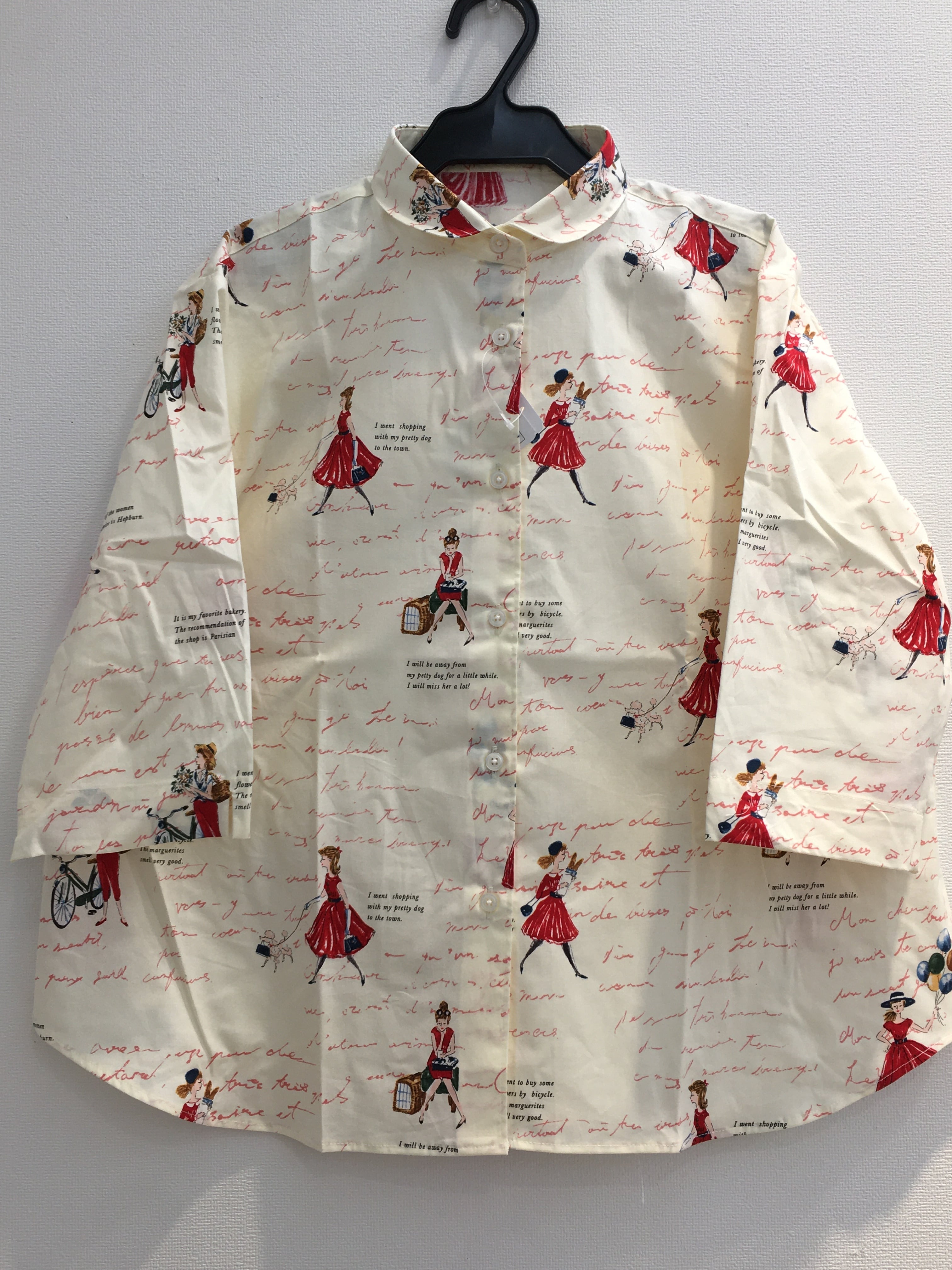 ブティックミナトオリジナル、女の子&英字の七分袖シャツです。