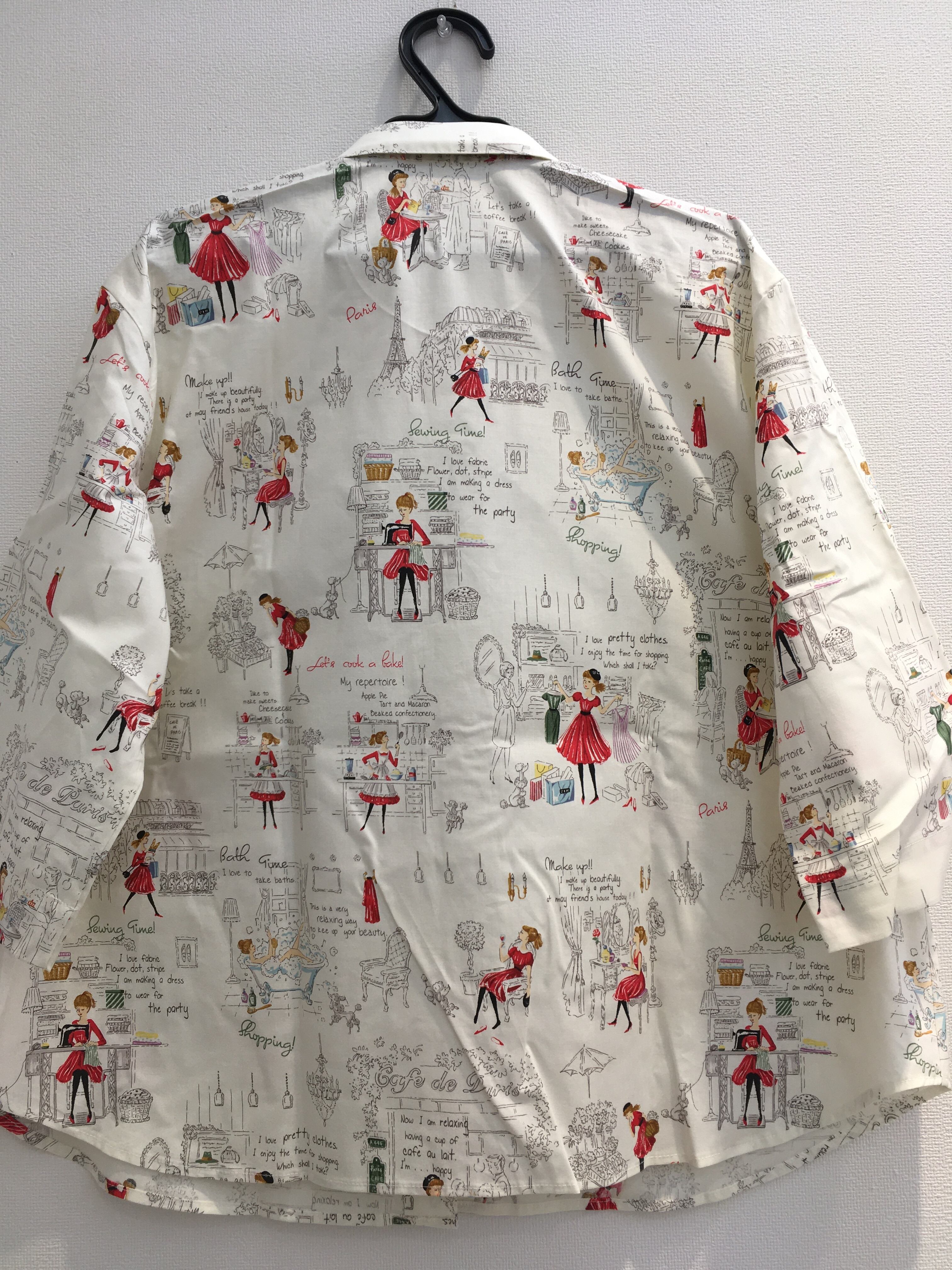 ブティックミナトオリジナル、パリの女の子柄七分袖シャツです。