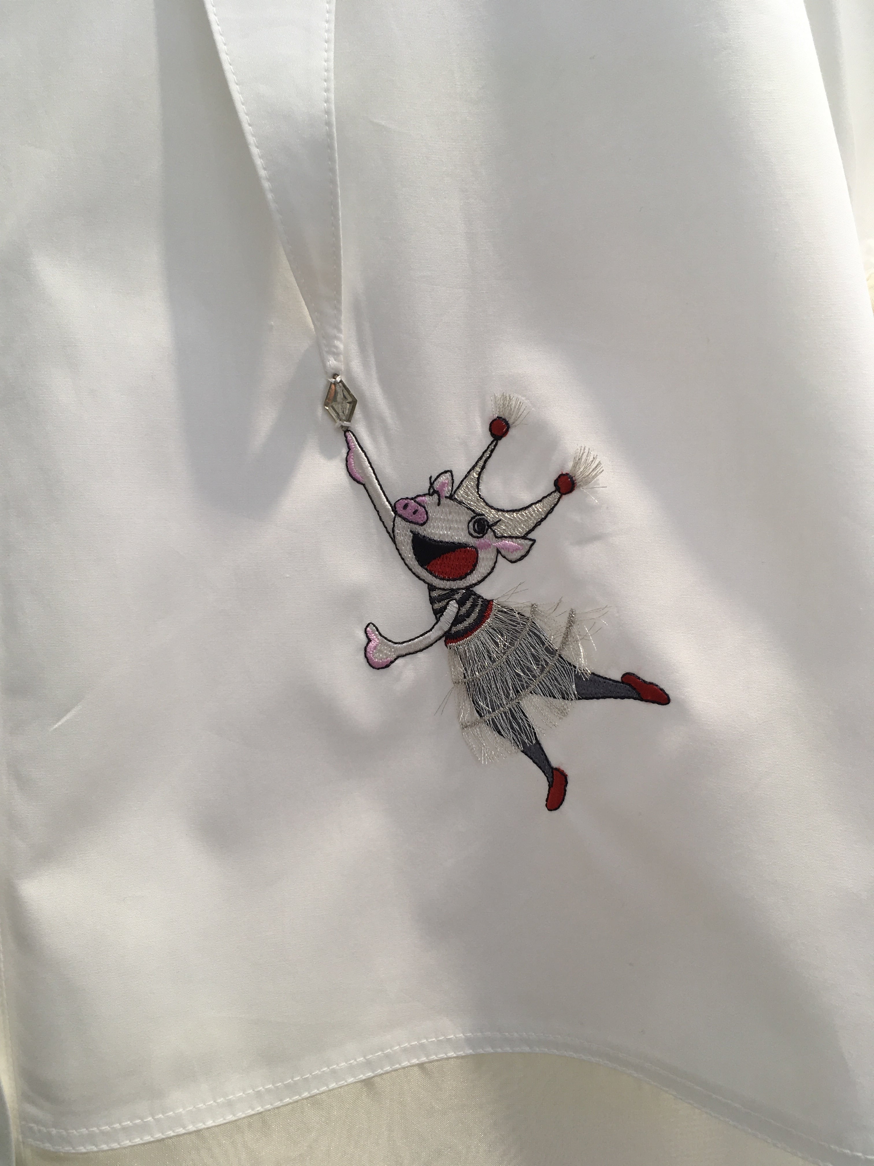 袖口と裾は薄いオレンジ色のオーガンジー素材です。