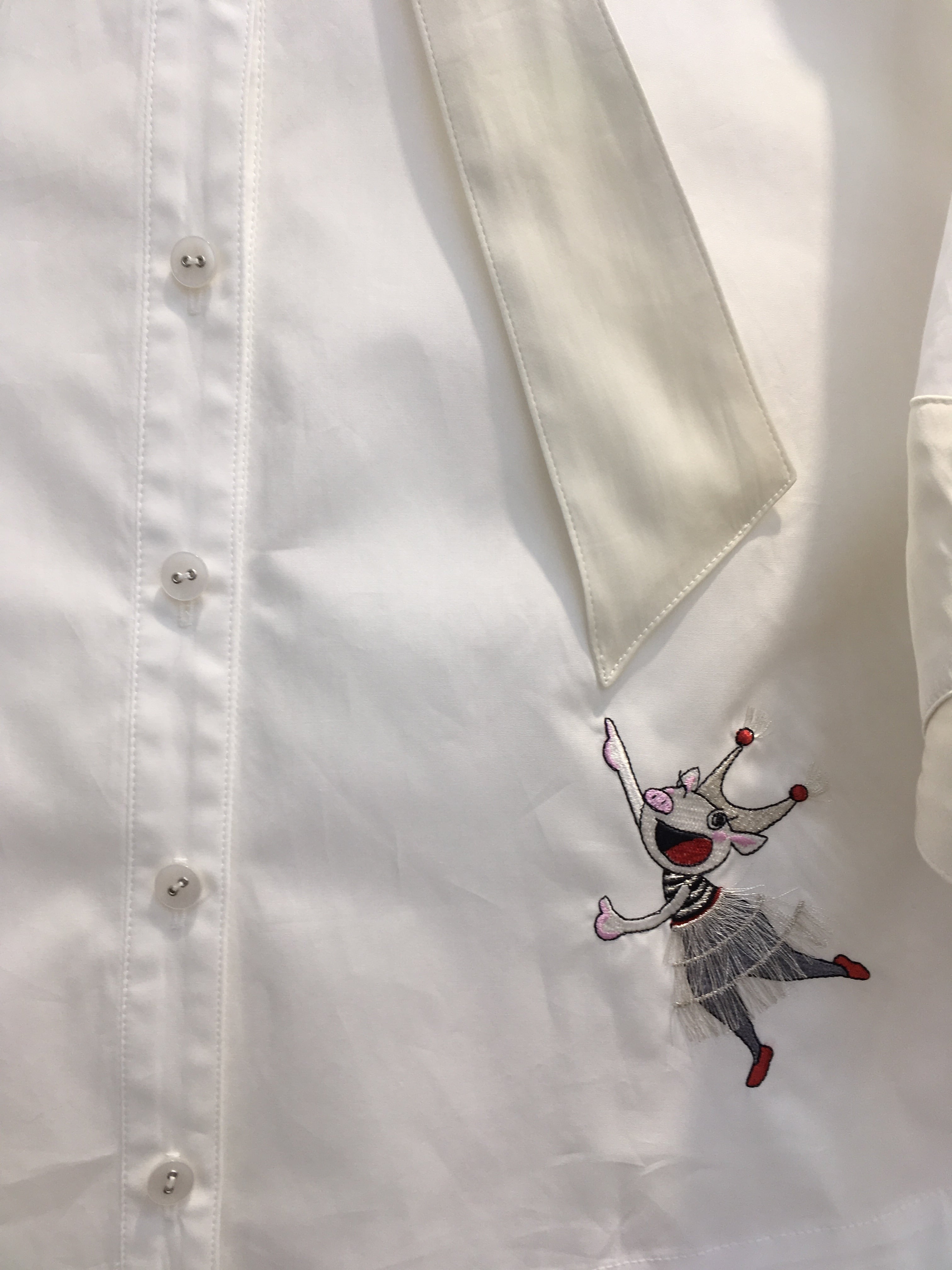 襟がリボンに、袖口がブタさんの足の形のデザインになっています。