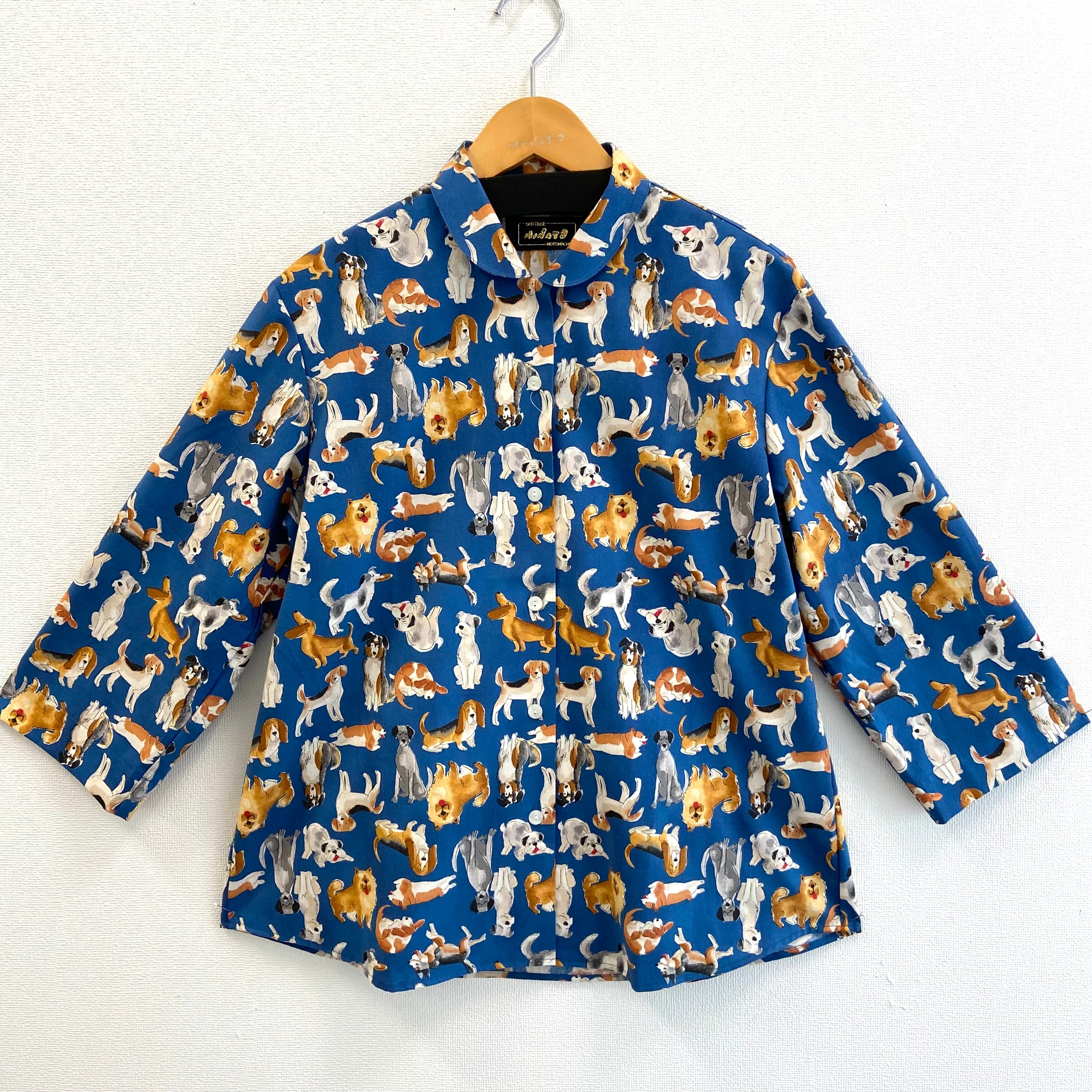 ミナトオリジナル 七分袖ブラウス 犬柄 MO-016